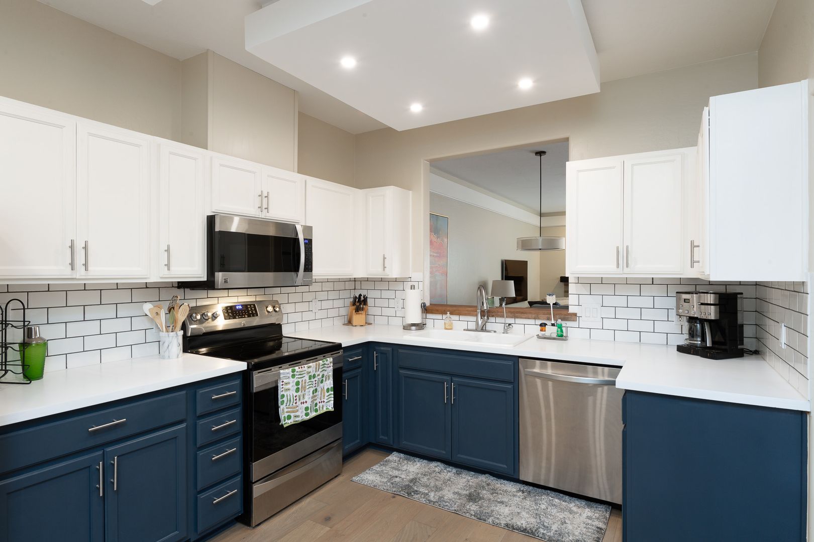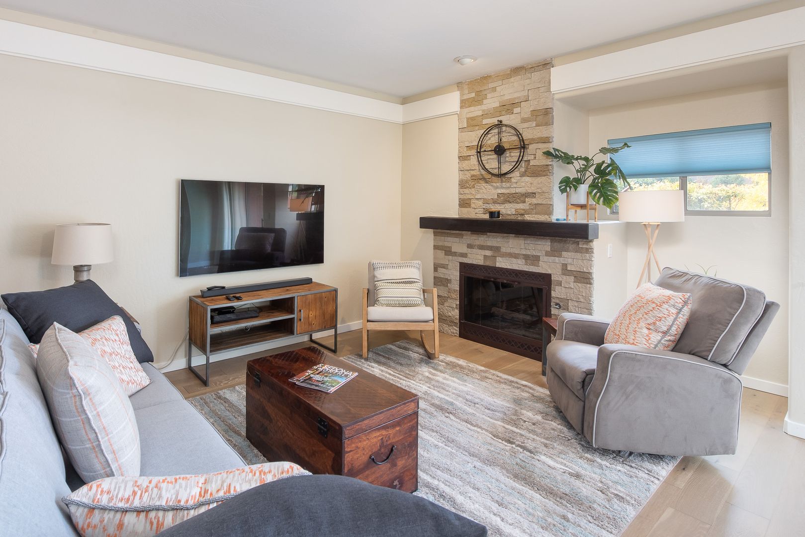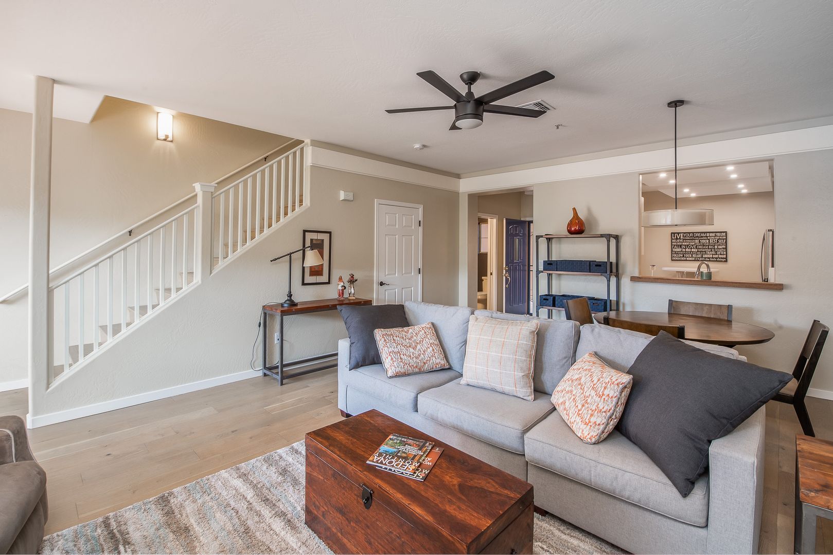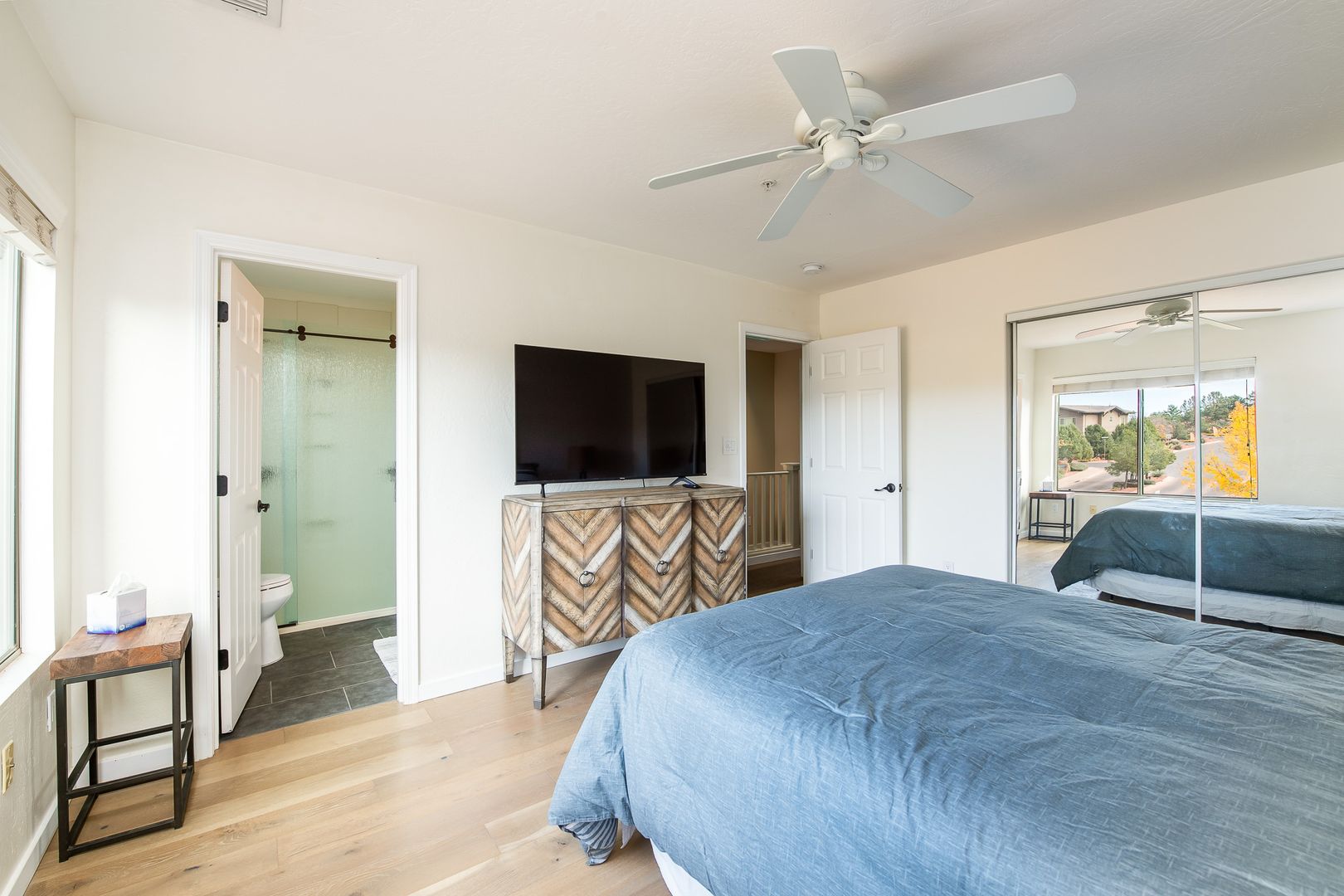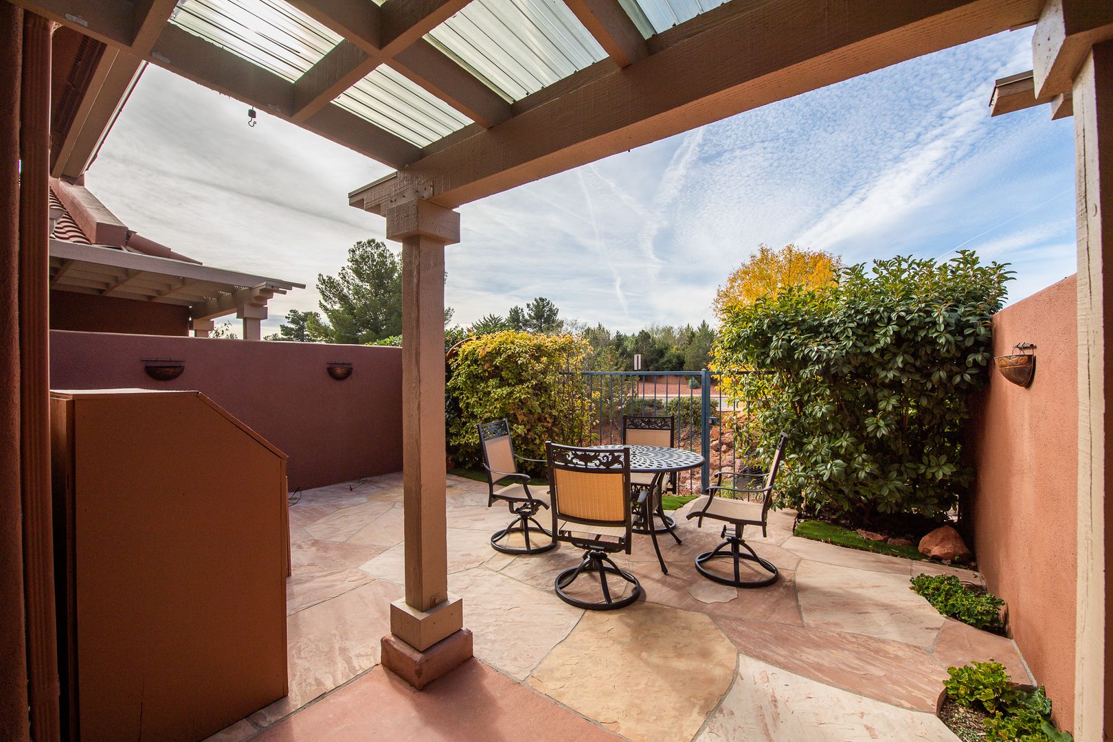 This coveted two story, two bedroom Nepenthe unit is located in the heart of West Sedona. Completely redone in 2020, this property boasts a completely refinished kitchen with stainless steel appliances, quartz countertops, and beautifully refinished cabinetry. Complete with a private gated entryway, enter the covered entryway into the refinished great room with a gas fireplace, dining area, and passthrough to the kitchen perfect for entertaining. Guests have access to a thoughtfully redone half bath on the first floor.
