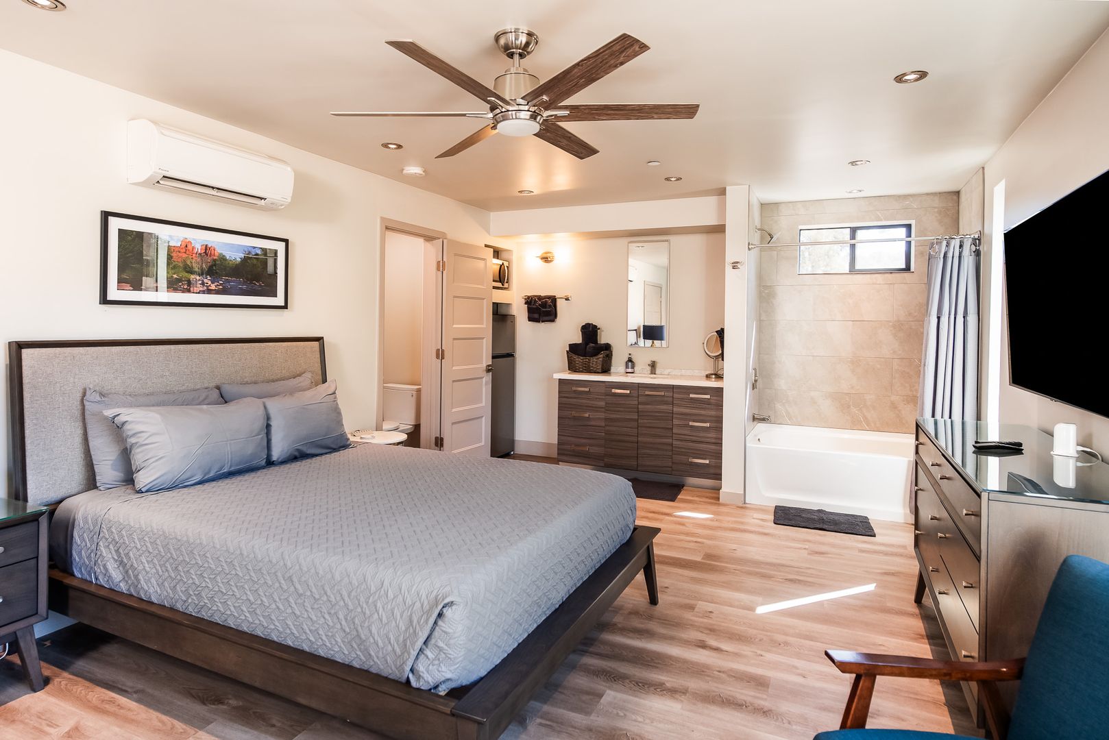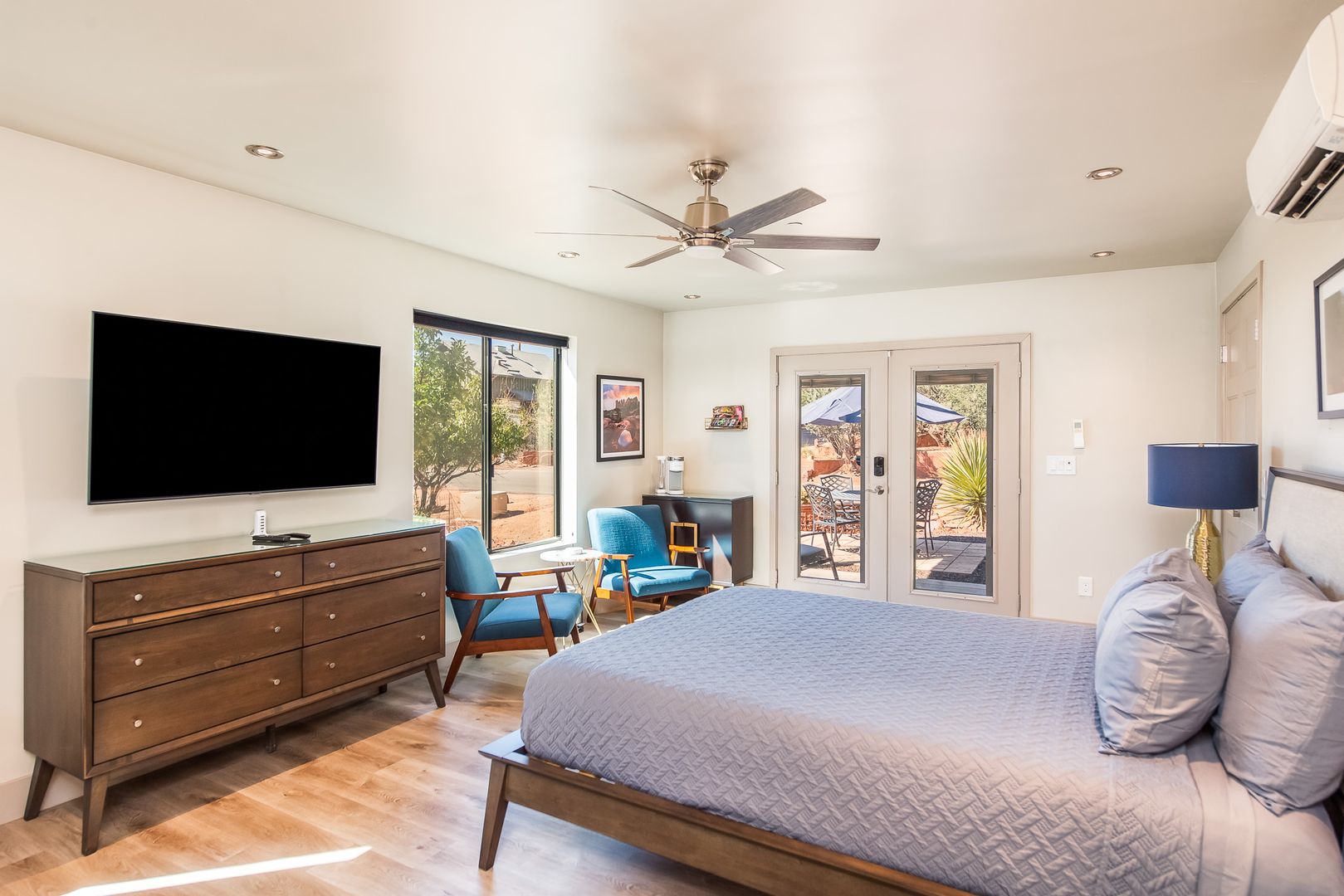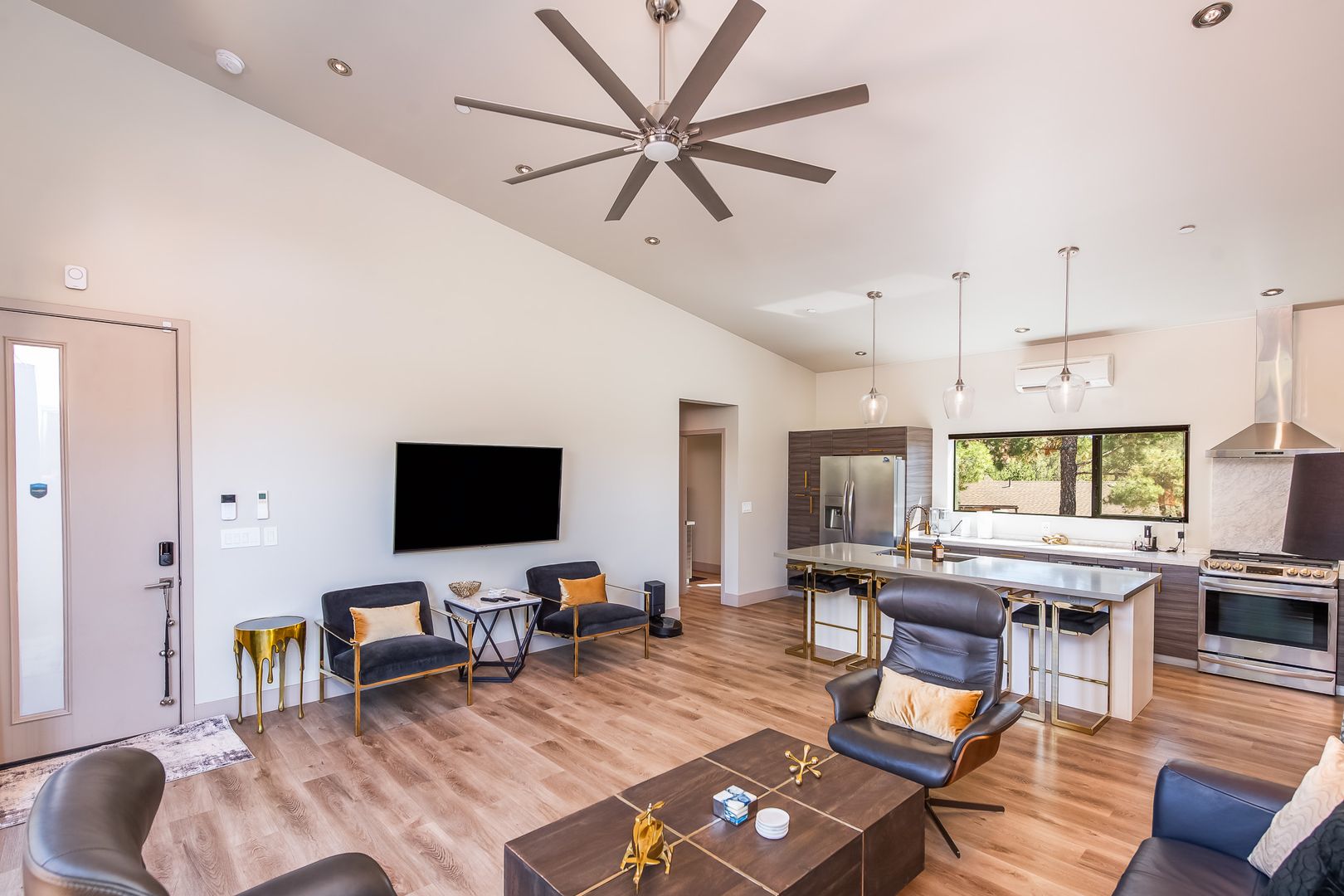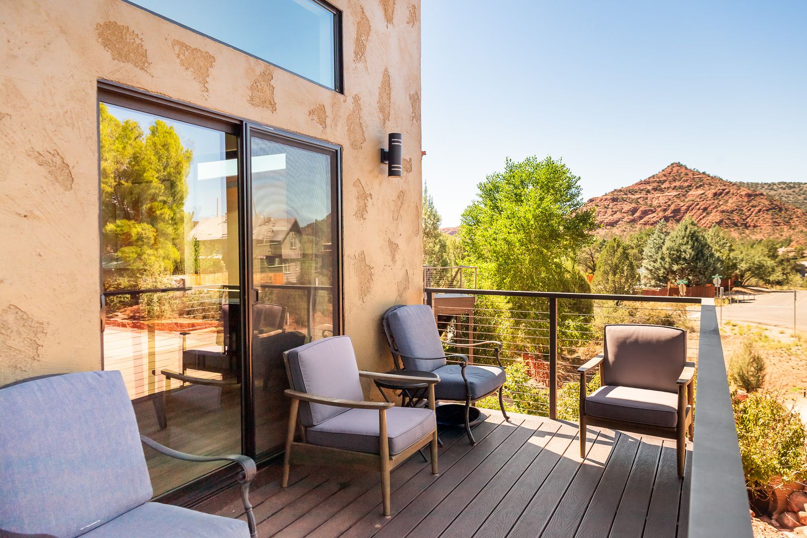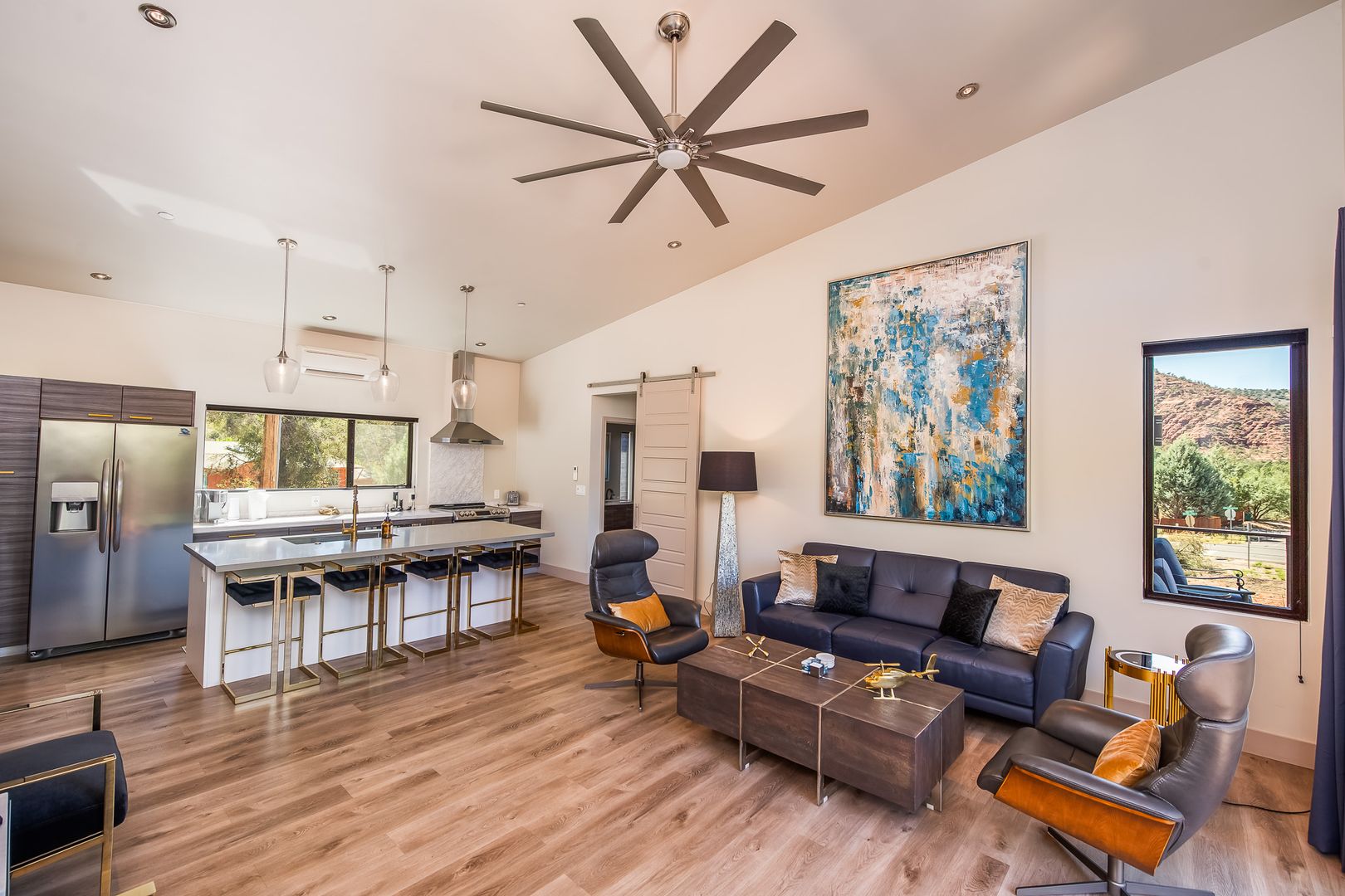 The home features 3 bedrooms and 3 bathrooms with the 3rd bedroom and bath downstairs with a separate entrance for the total of approximately 1,523 square feet of well-designed living space. Large windows throughout invite natural light and frame iconic Sedona scenery. The open floor plan flows seamlessly between the living, dining, and kitchen areas, creating a perfect setting for both everyday living and entertaining.