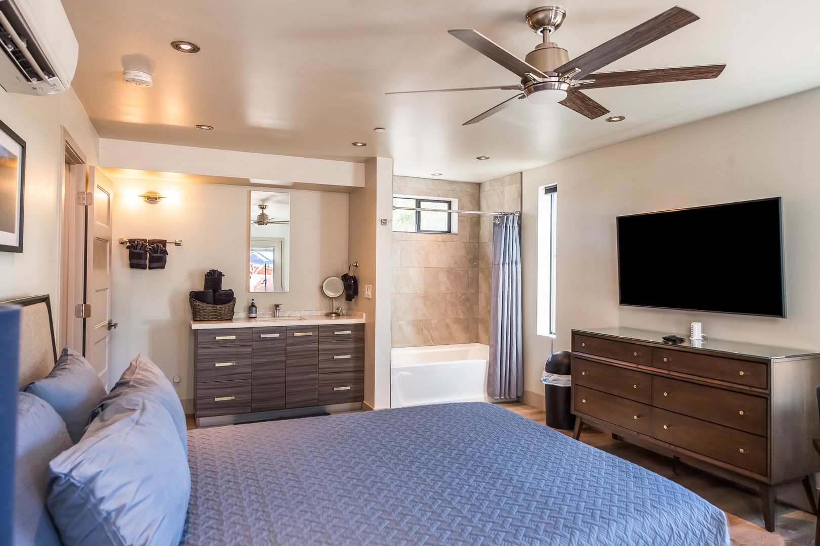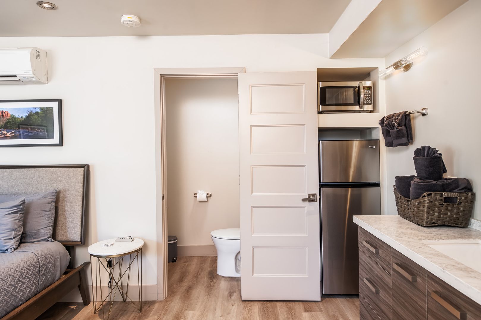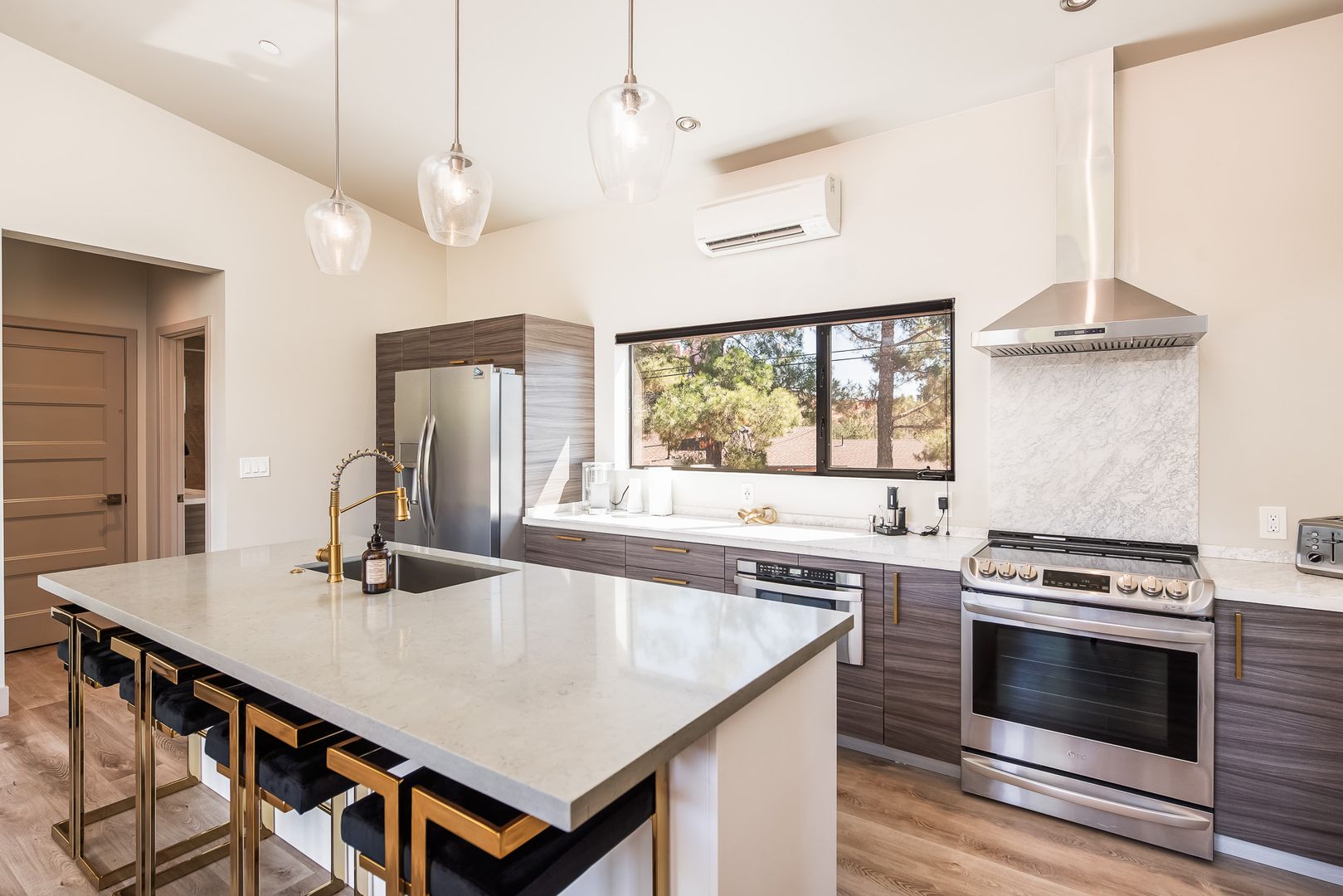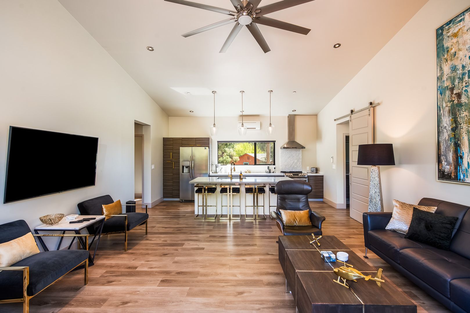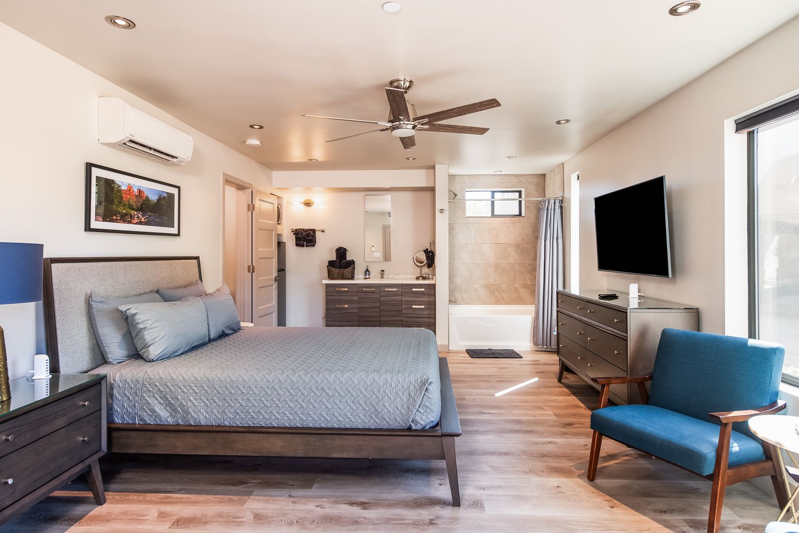 The home features 3 bedrooms and 3 bathrooms with the 3rd bedroom and bath downstairs with a separate entrance for the total of approximately 1,523 square feet of well-designed living space. Large windows throughout invite natural light and frame iconic Sedona scenery. The open floor plan flows seamlessly between the living, dining, and kitchen areas, creating a perfect setting for both everyday living and entertaining.