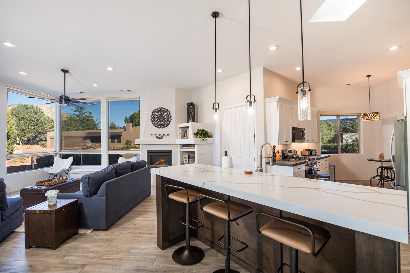 Beautiful contemporary 3BR/2BA single-family home in the Village of Oak Creek with stunning red rock views. Built in 2000 and offering approximately 1,932 square feet, this home features a desirable split-bedroom floor plan, abundant natural light, and thoughtful architectural details throughout.