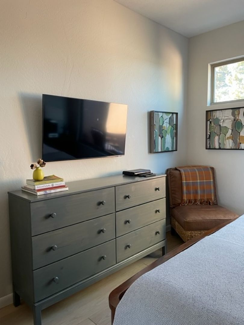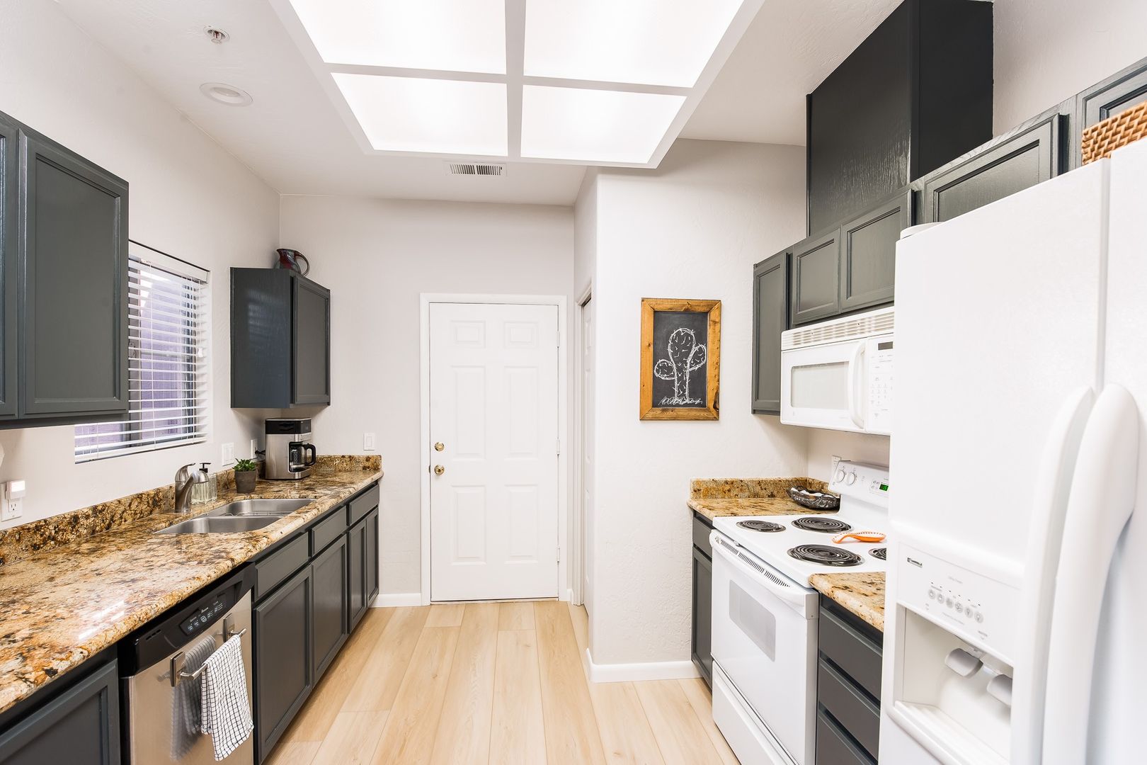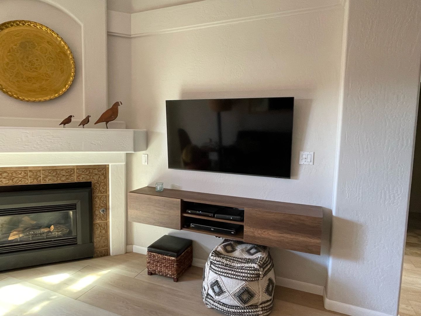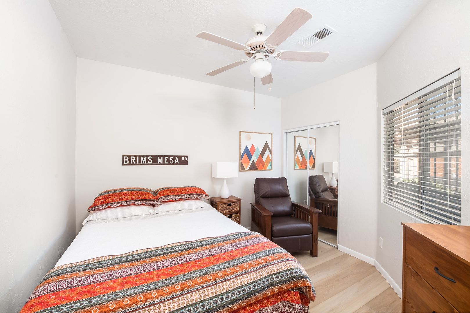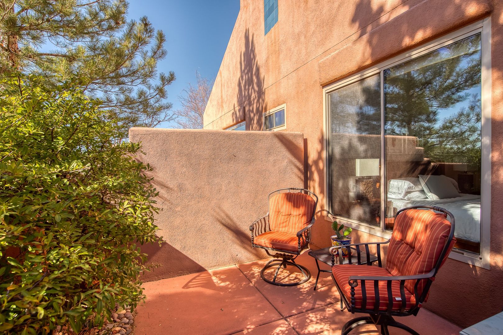In the heart of West Sedona, this charming updated 2 bedroom 1 bath townhome sits high atop the hill in the lovely Nepenthe community. It offers over 900 sq. feet of living space featuring vaulted ceilings, cozy corner fireplace in the living room, and split- bedroom design with queen beds in each and full bath off the hallway. A well equipped kitchen leads to the adjoining dining area with custom copper table, or enjoy the BBQ