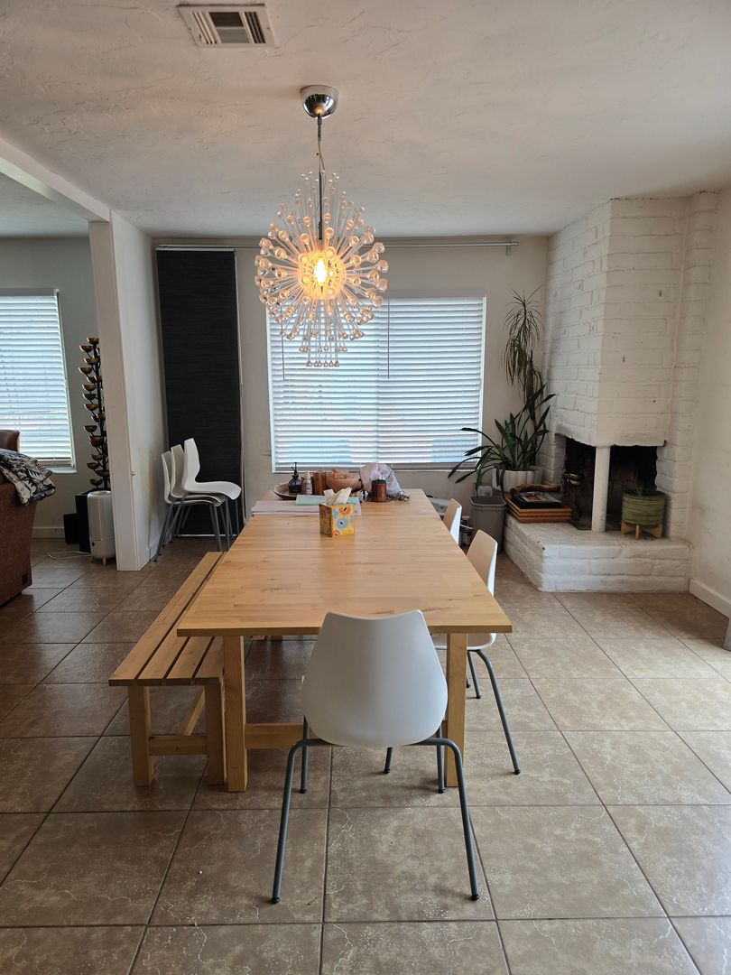 Recent updates include new travertine flooring in the primary suite and guest bedroom, a new sliding door in the primary bedroom, new double-pane vinyl windows, and newly painted interior and exterior. The side driveway has also been refreshed with new gravel. Out back, you’ll find a fully fenced yard for privacy, peach trees, and plenty of space to build out the garden you’ve been dreaming about.