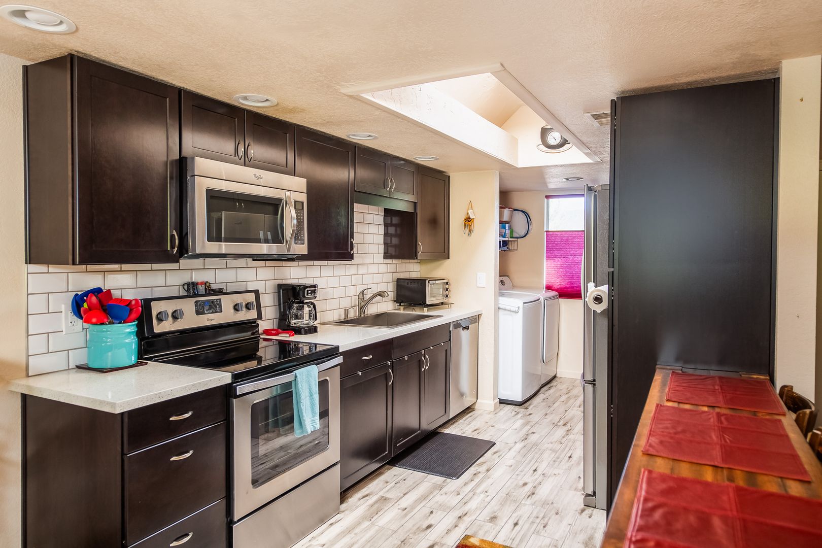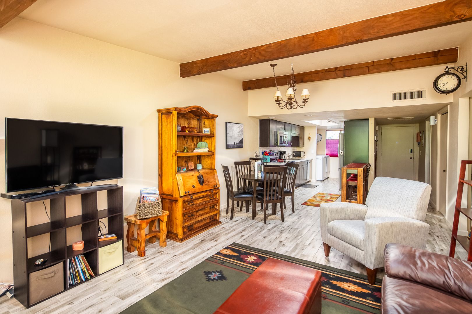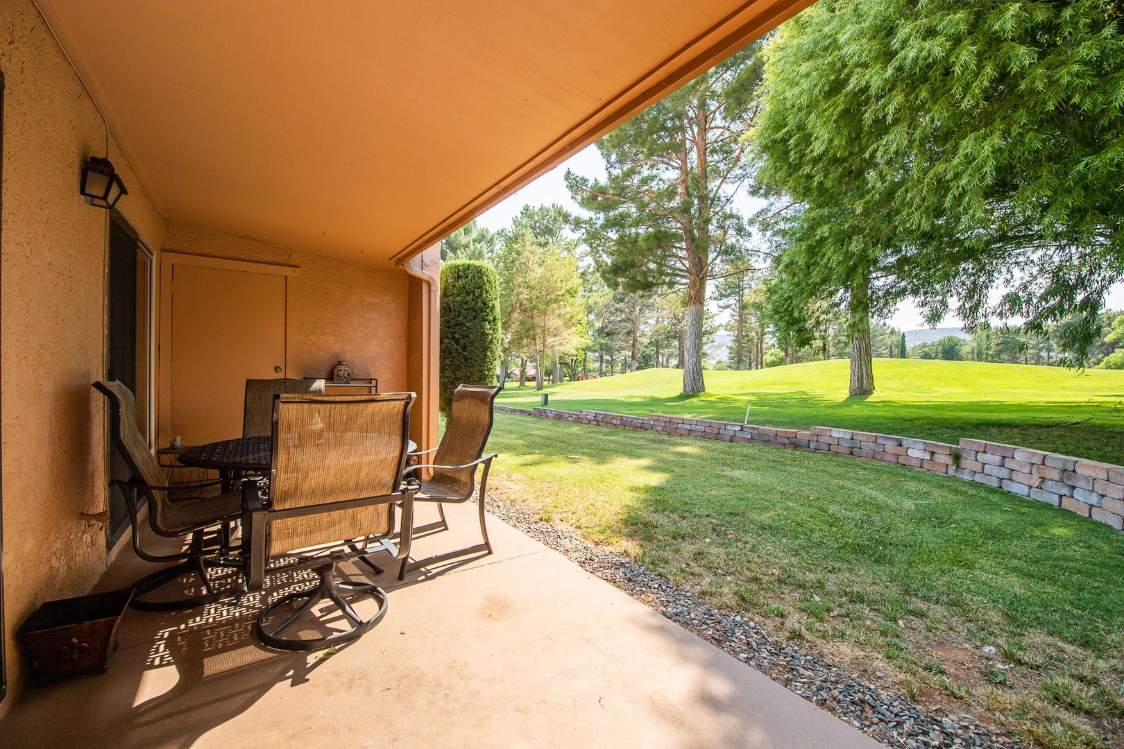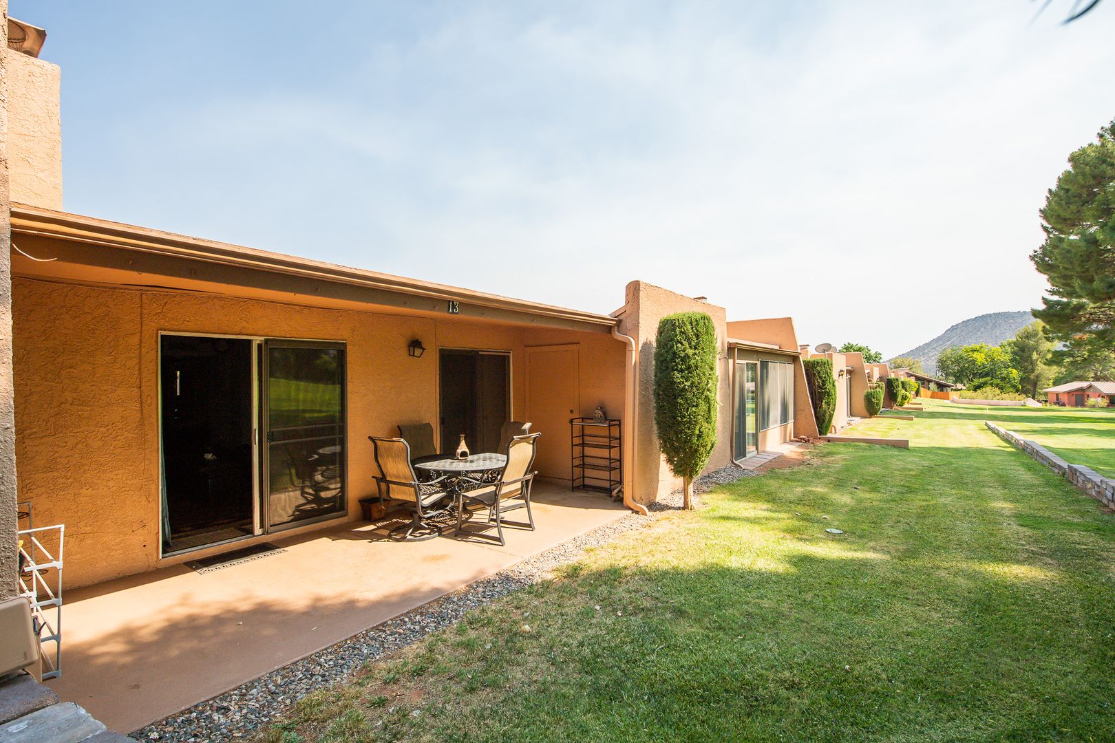 2BR/2BA townhouse located in the heart of The Village of Oak Creek right on the Oak Creek Golf Course with Red Rock views in the Village of Oak Creek. Built in 1979, this unit has seen updates through including two new bathrooms with stunning tile work; updated flooring; an updated kitchen. The living room features gorgeous fireplace for decorative purposes that open into a beautiful dining space. Steps out onto the large covered patio which offers incredible red rock views and a full panorama of the golf course. Two parking spaces, uncovered, and privately reserved for the unit.