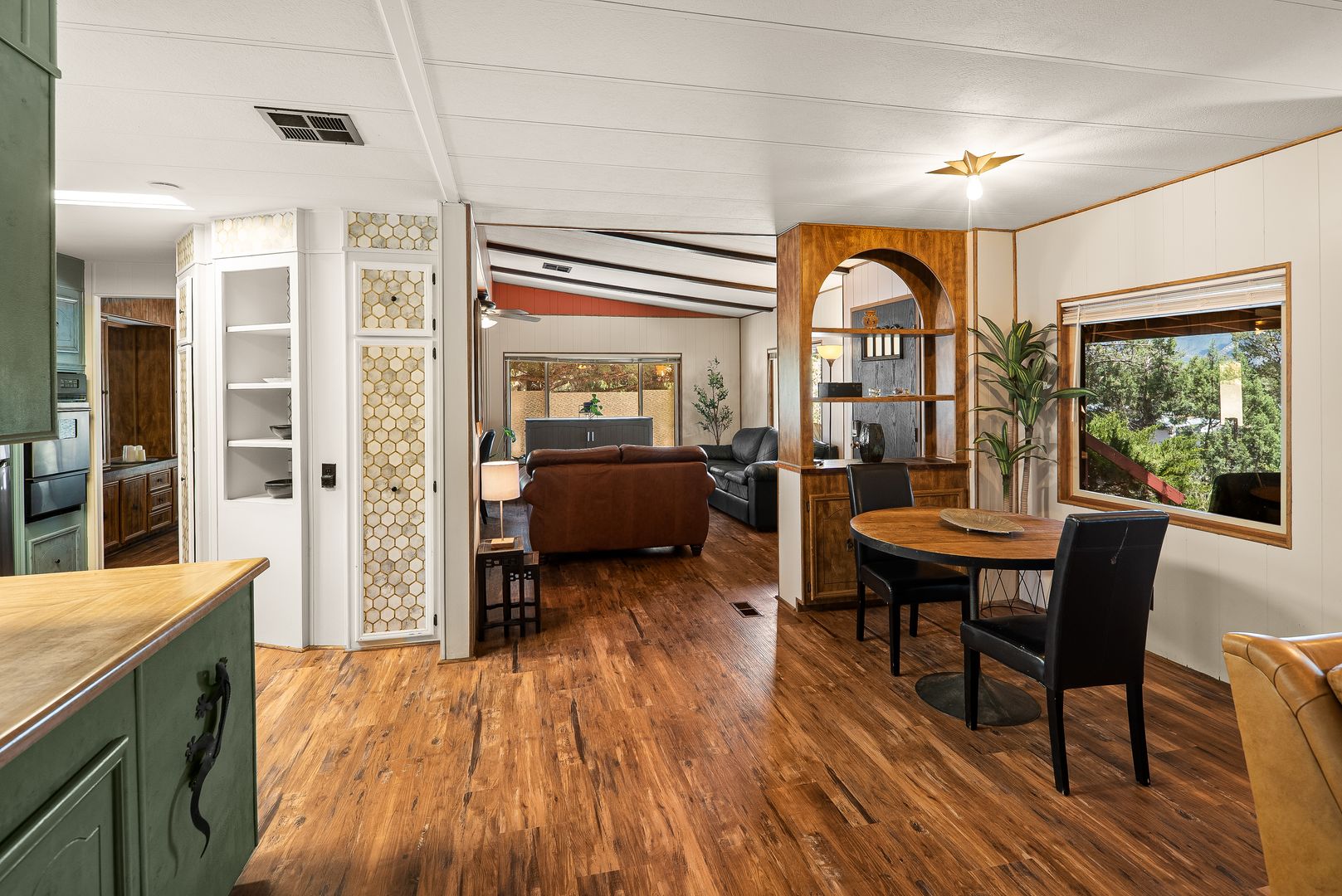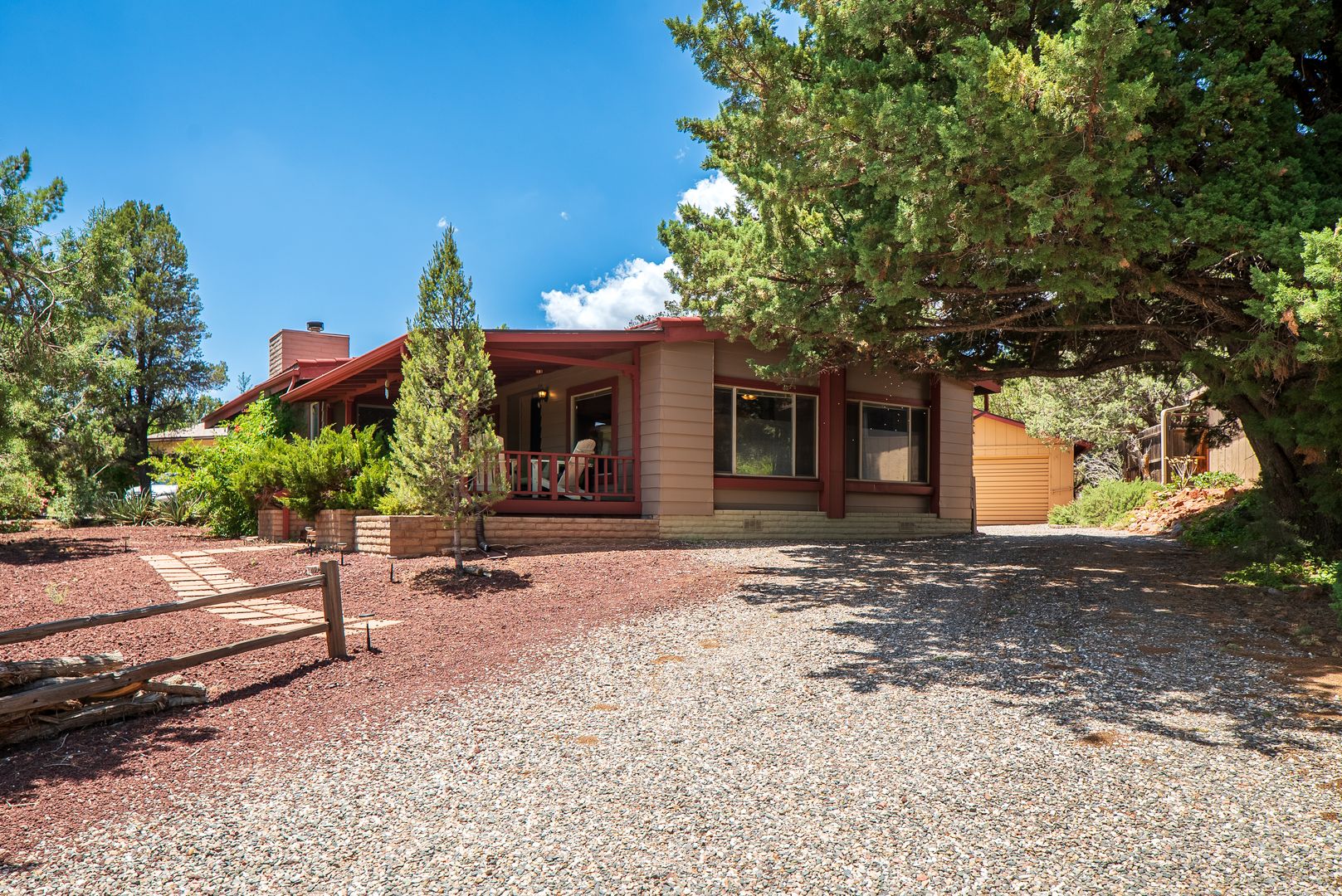 This gorgeous, single level home is located in the heart of West Sedona. With big views and minutes from trailheads, the home offers privacy and is perfectly set amongst mature trees. Built in 1980, the home has been updated and includes a brand new HVAC unit that was just installed in 2024. The home offers a spacious sitting area that includes with a library and study area; an open kitchen; and a large dining and sitting area at the front of the home that leads out to a large front patio. In the rear of the home, a large primary bedroom complete with en-suite and a second bedroom with access to the second full bathroom.