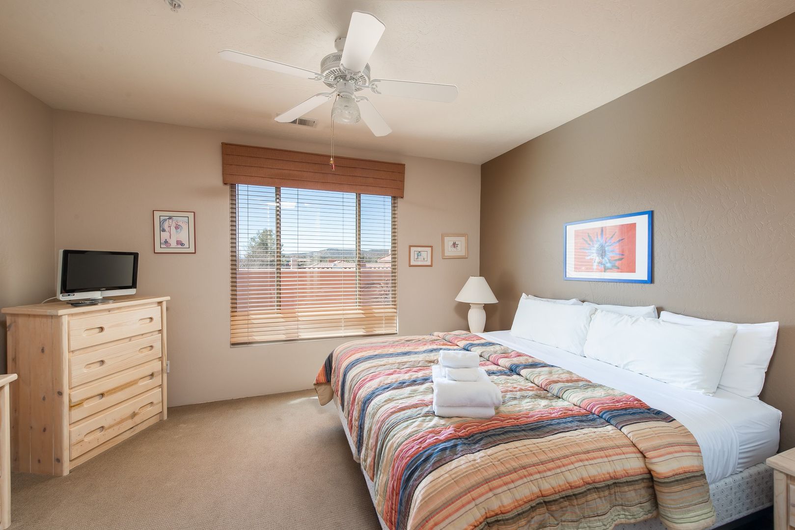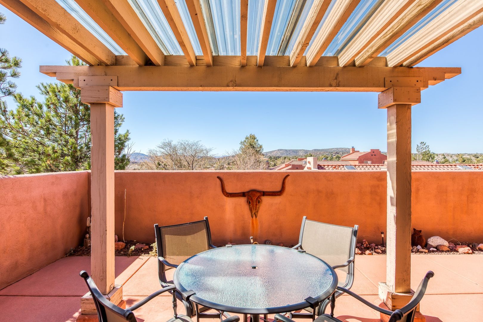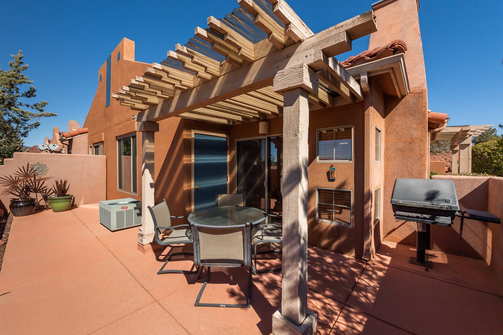 2BR/1.75BA Nepenthe Patio Home END UNIT located in the "heart" of Sedona. Living room features cathedral ceiling, gas fireplace, art niches with approx. 1,142 sq ft. Kitchen highlights electric stove, pass through window and small desk area. Dining table seats four. Master bedroom features king size bed and walk-in closet and shower in master bathroom. Second bedroom has two (2) twin beds. Private patio with gas BBQ. Come and enjoy Sedona in an affordable, fully furnished patio home with a community Pool/Hot Tub. Heated site Pool open from mid-April to mid-October and site Hot Tub open and heated year-round. Close to all the amenities of West Sedona. Double car attached garage.