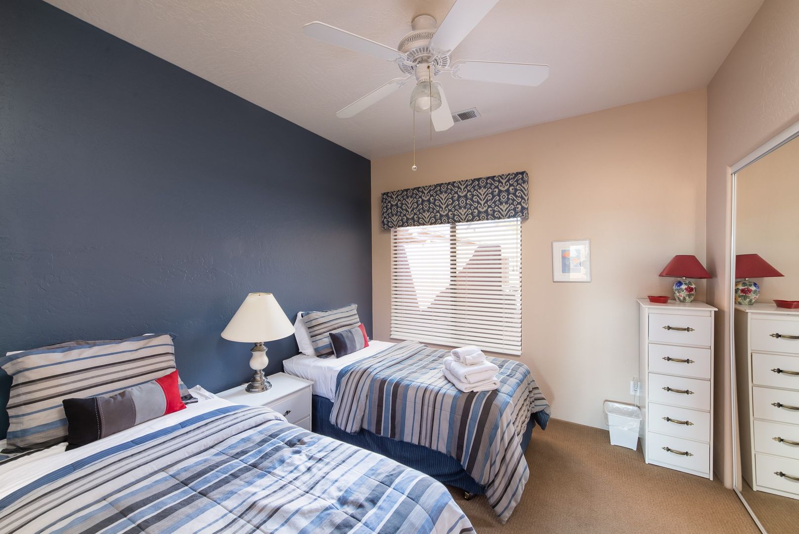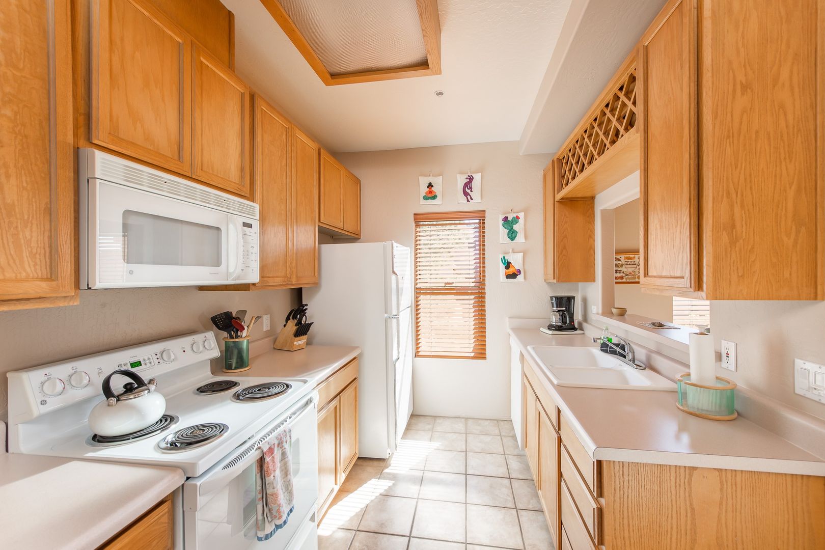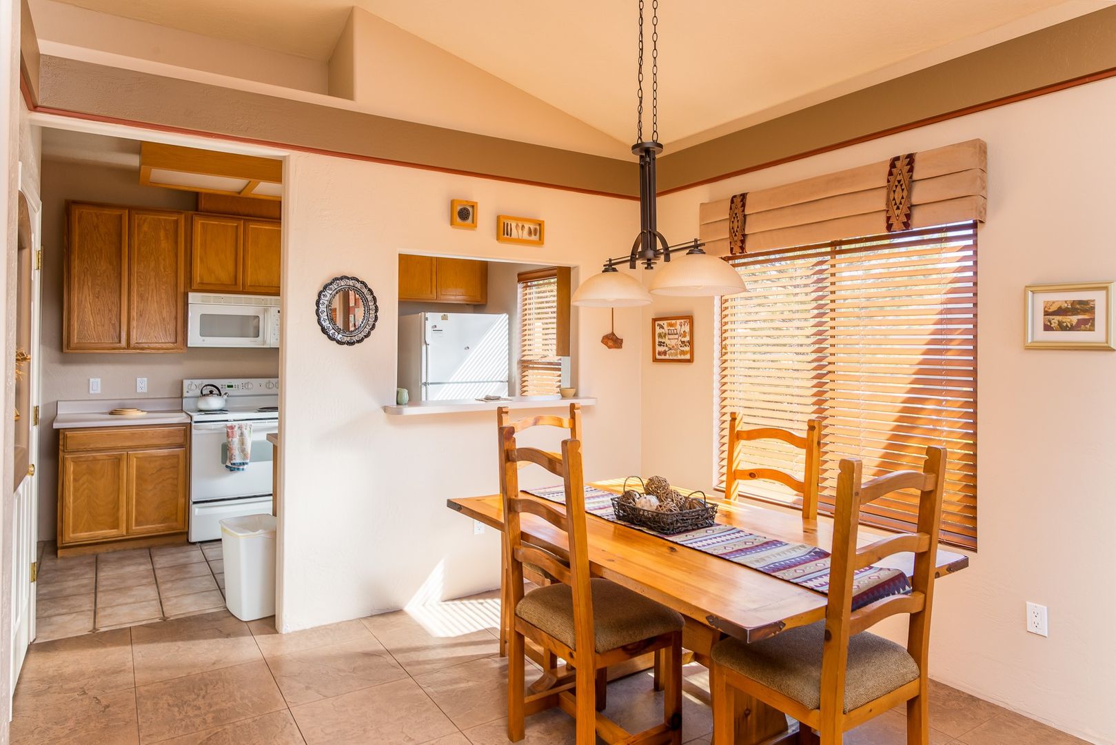 2BR/1.75BA Nepenthe Patio Home END UNIT located in the "heart" of Sedona. Living room features cathedral ceiling, gas fireplace, art niches with approx. 1,142 sq ft. Kitchen highlights electric stove, pass through window and small desk area. Dining table seats four. Master bedroom features king size bed and walk-in closet and shower in master bathroom. Second bedroom has two (2) twin beds. Private patio with gas BBQ. Come and enjoy Sedona in an affordable, fully furnished patio home with a community Pool/Hot Tub. Heated site Pool open from mid-April to mid-October and site Hot Tub open and heated year-round. Close to all the amenities of West Sedona. Double car attached garage.
