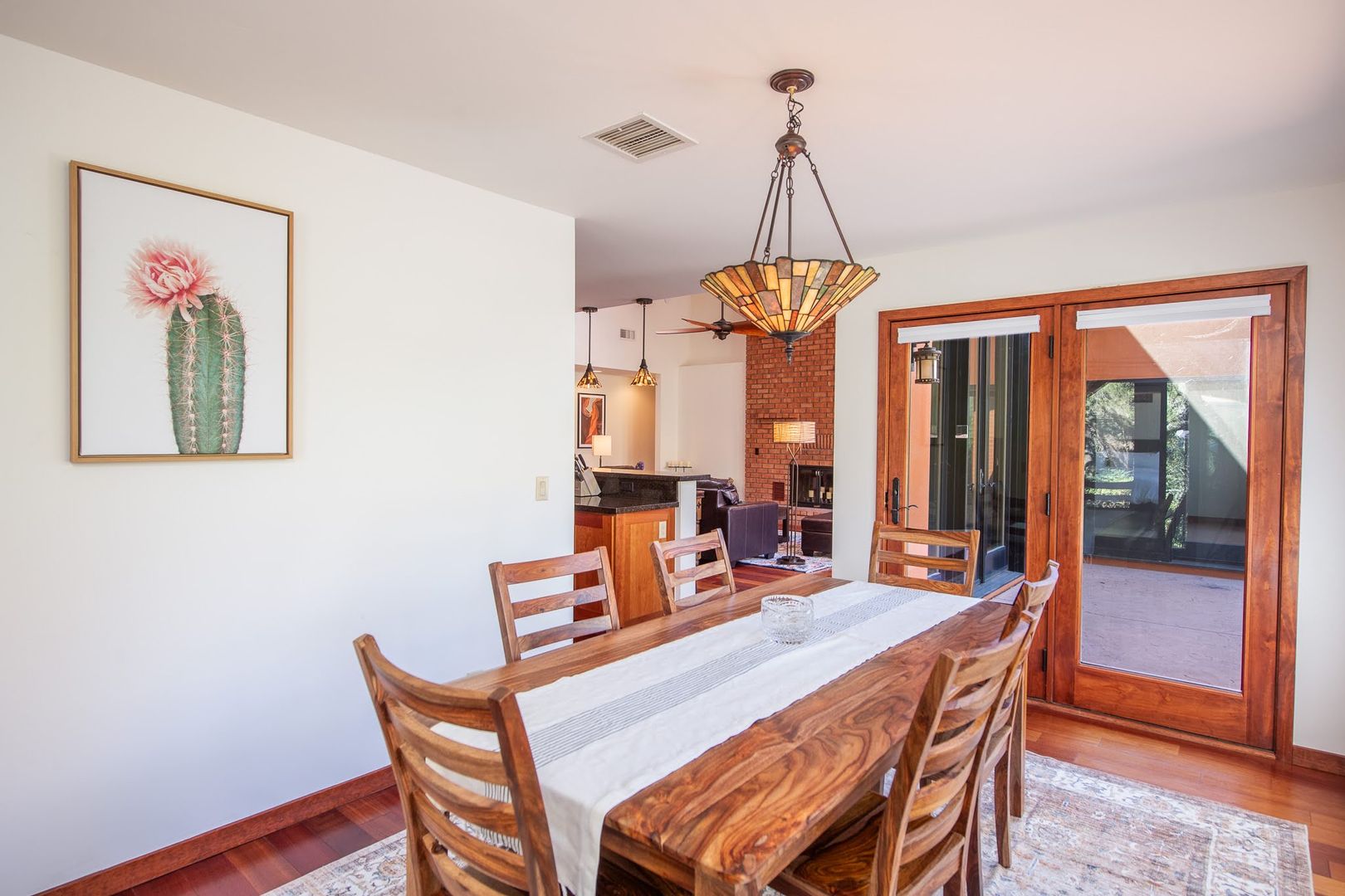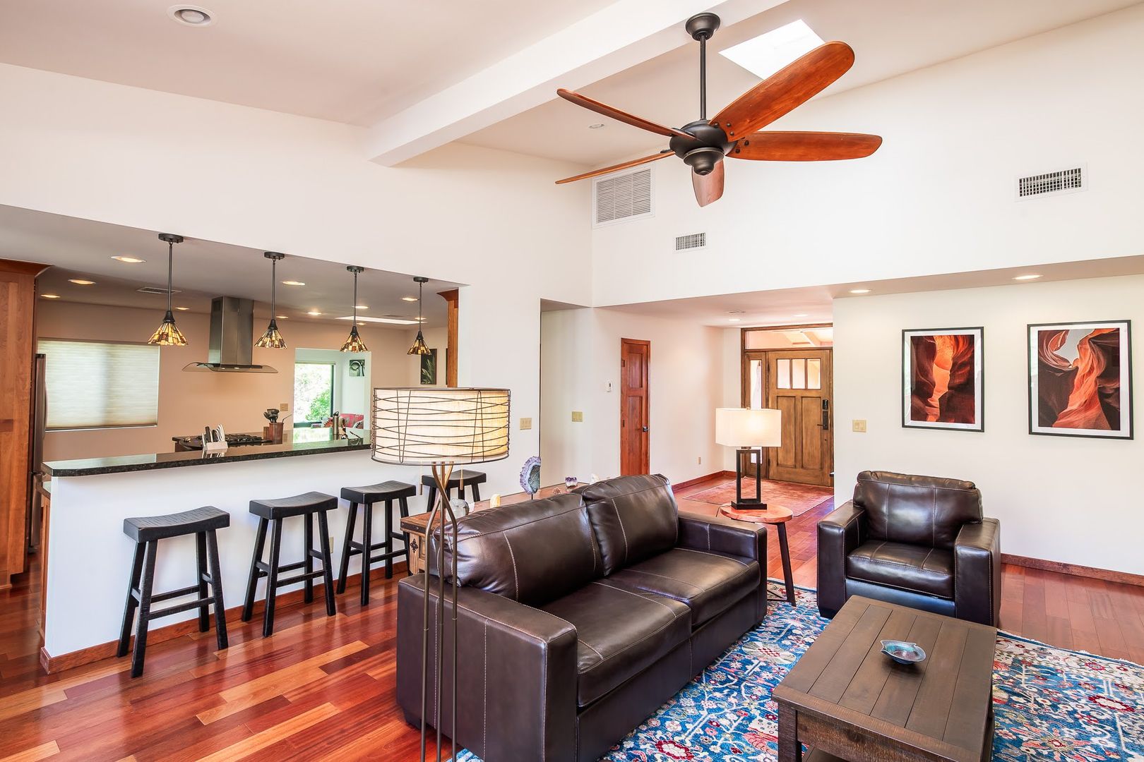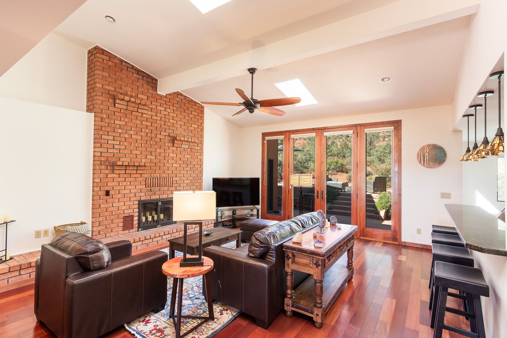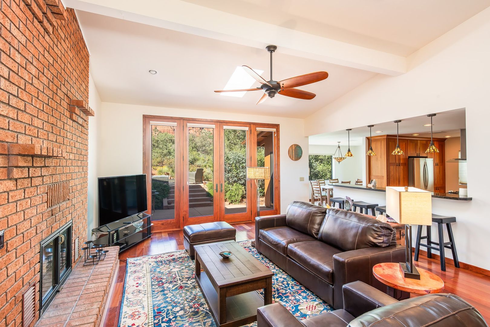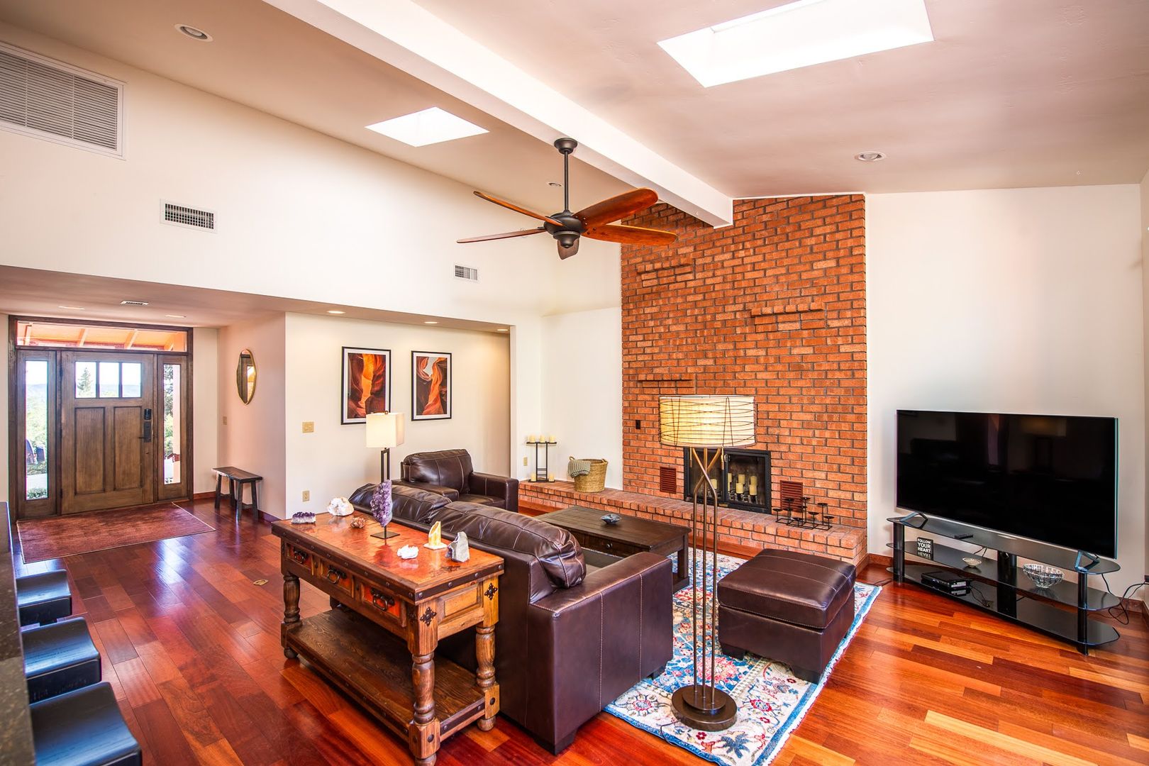 This incredible home is located at the foot of Thunder Mountain and backs to U.S. Forest Service land. Constructed in 1979, this three bedroom, two bathroom, 2,128 square foot home has been painstakingly redone. Gorgeous natural woods and brick adorn the home with incredible views to the North. A large chefs kitchen complete with stainless steel appliances and a gas range; a large primary bedroom complete with a tile en-suite bathroom; a large main sitting area with a fireplace; and a formal dining area make this home incredibly inviting.