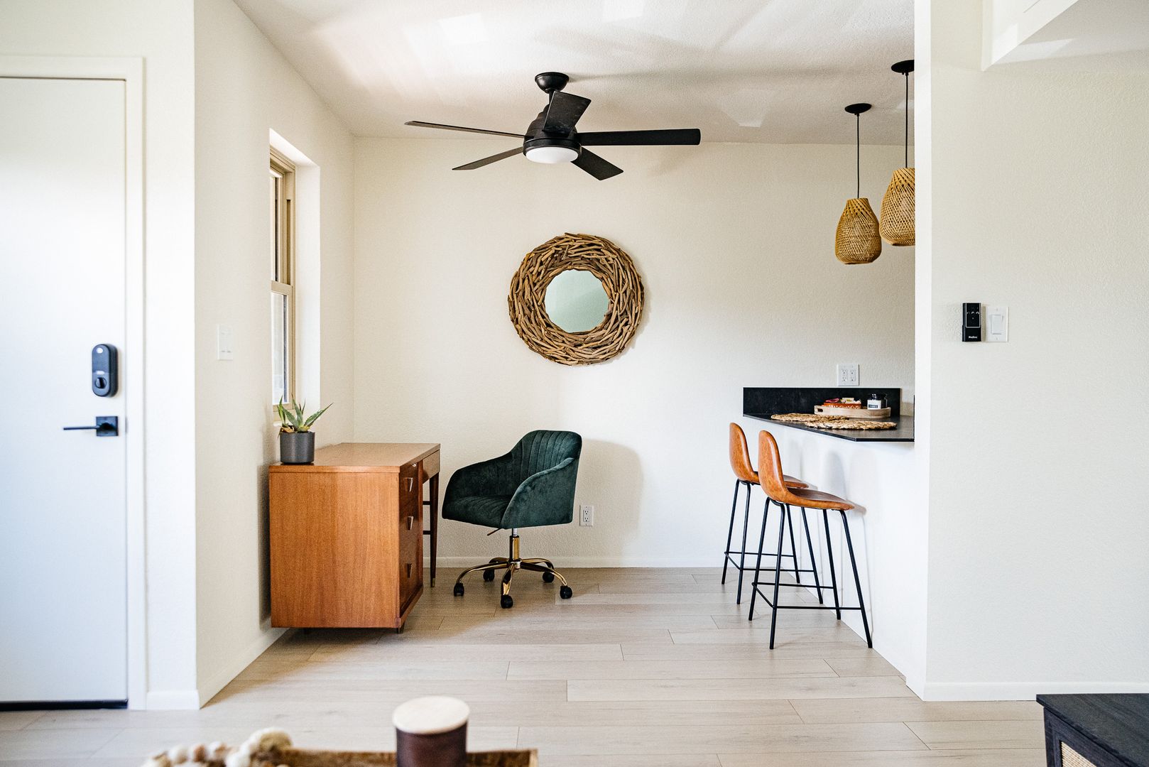 All newly remodeled, designer apartment located in the heart of Uptown Sedona complete with furnishings and accoutrements. This 1 bedroom, 1 bathroom is centrally located around the corner from restaurants, shopping, hiking, and more. Each unit has been professionally designed with thoughtful touches throughout. The kitchen is fully-equipped with new appliances which opens into a living room complete with Smart television and a dedicated workspace with stunning views of the Red Rocks. On site laundry facility on-site: each tenant has a dedicated day of the week with Sunday's open for everyone's use.