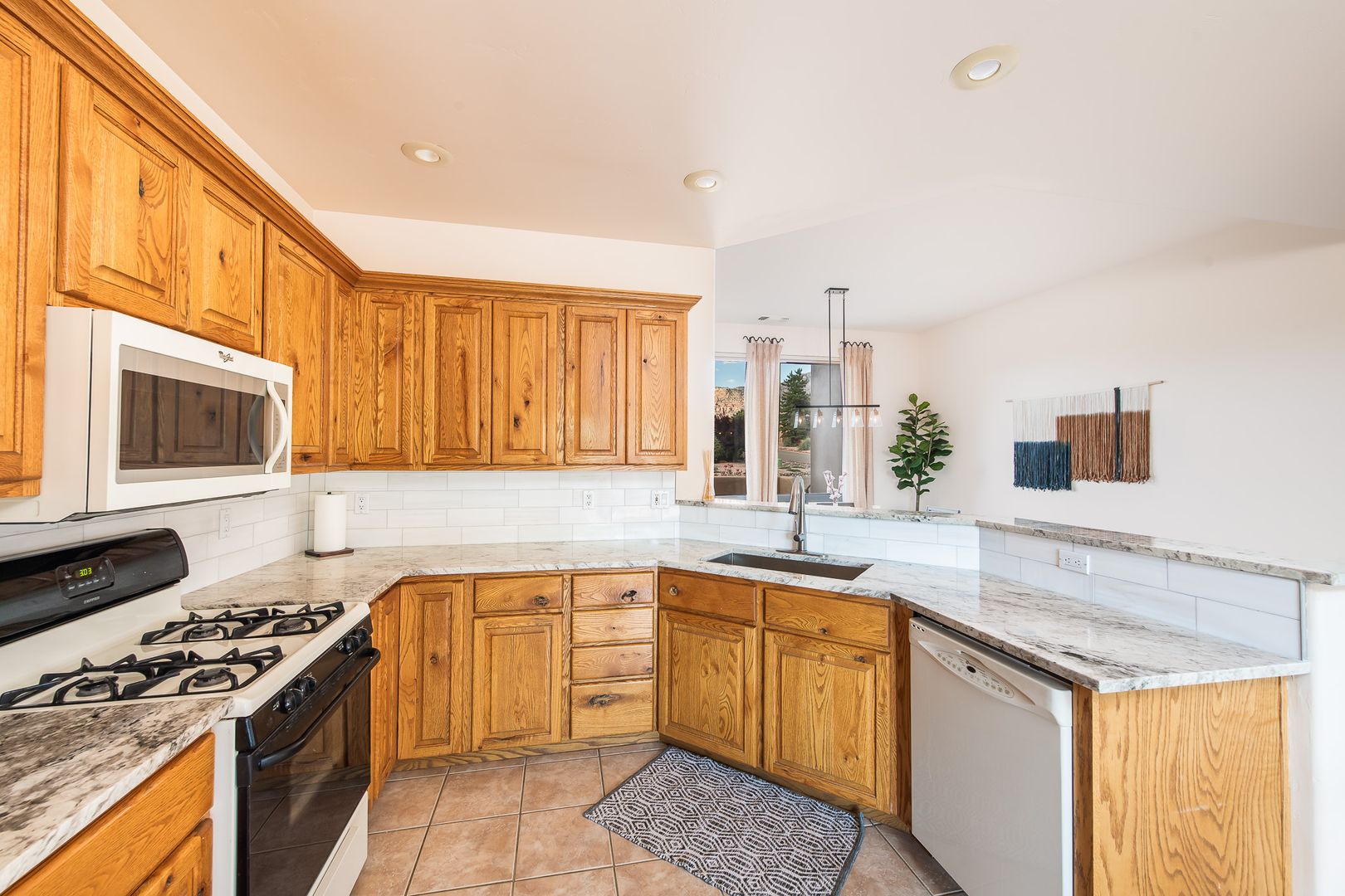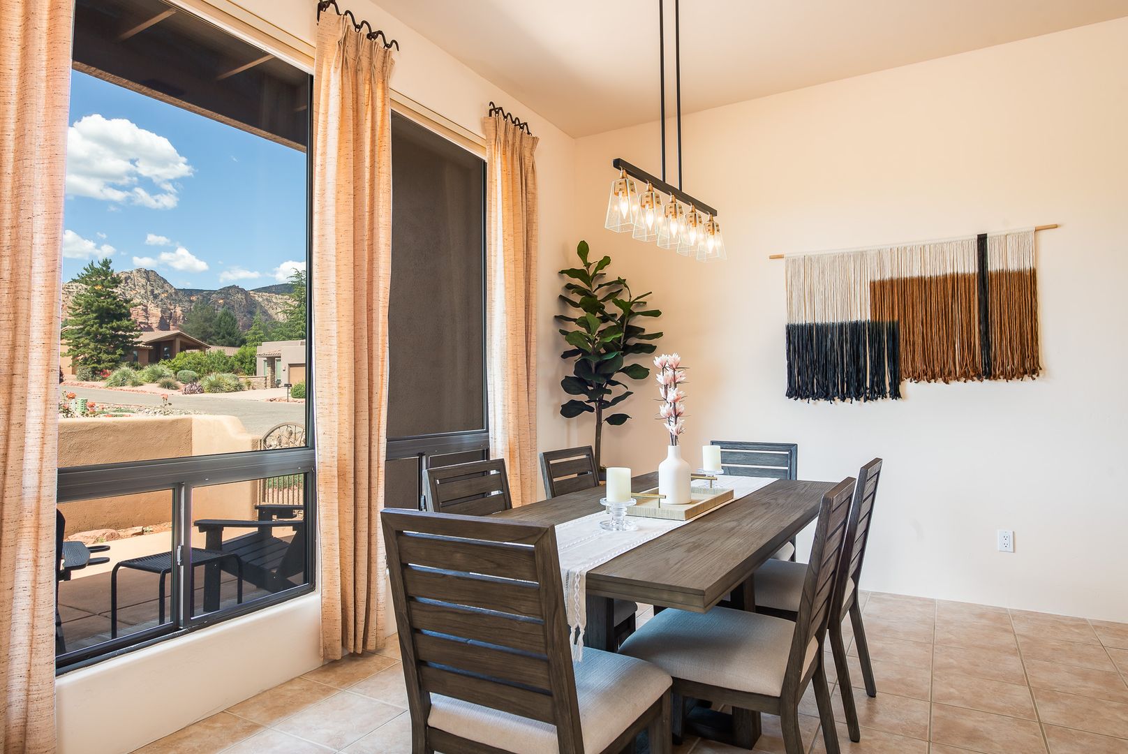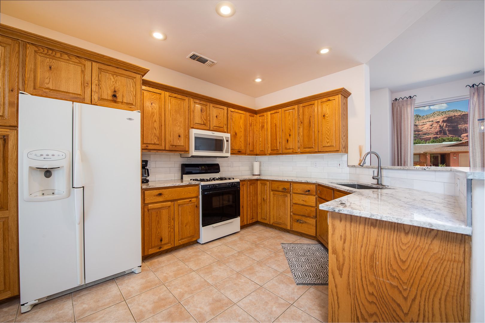 This stunning 3 bedroom, 2 bathroom, single level home is located in the Cathedral View Subdivision of the Village of Oak Creek. The 2,062 square foot home sits on a corner and offers incredible red rock views to the north and the mesas to the south. Step into the home and be welcomed by a large foyer with a great room to the right complete with a beehive fireplace. From the great room, step into the primary bedroom complete with an en-suite bathroom and extensive closet space. On the other side of the home, the kitchen/dining area flows together nicely and is perfect for entertaining. The guest bedroom and den/3rd bedroom are thoughtfully split from the primary bedroom and include a full bath and a well appointed laundry room. A large two car garage is conveniently located near the kitchen for easy access.
