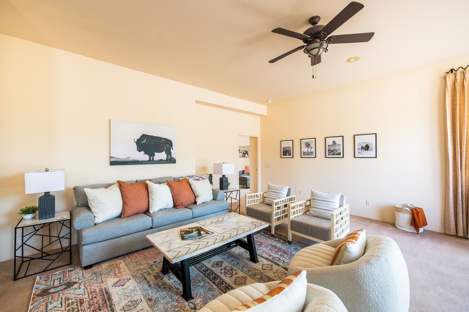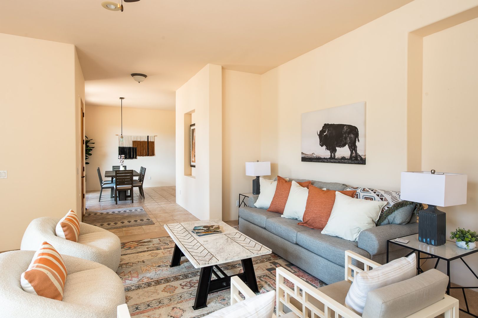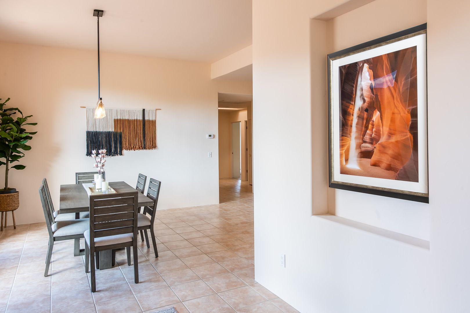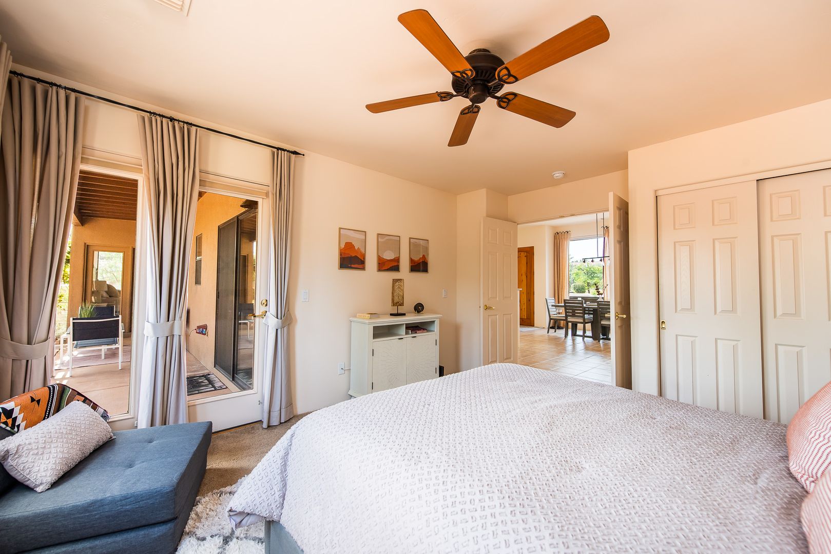 This stunning 3 bedroom, 2 bathroom, single level home is located in the Cathedral View Subdivision of the Village of Oak Creek. The 2,062 square foot home sits on a corner and offers incredible red rock views to the north and the mesas to the south. Step into the home and be welcomed by a large foyer with a great room to the right complete with a beehive fireplace. From the great room, step into the primary bedroom complete with an en-suite bathroom and extensive closet space. On the other side of the home, the kitchen/dining area flows together nicely and is perfect for entertaining. The guest bedroom and den/3rd bedroom are thoughtfully split from the primary bedroom and include a full bath and a well appointed laundry room. A large two car garage is conveniently located near the kitchen for easy access.