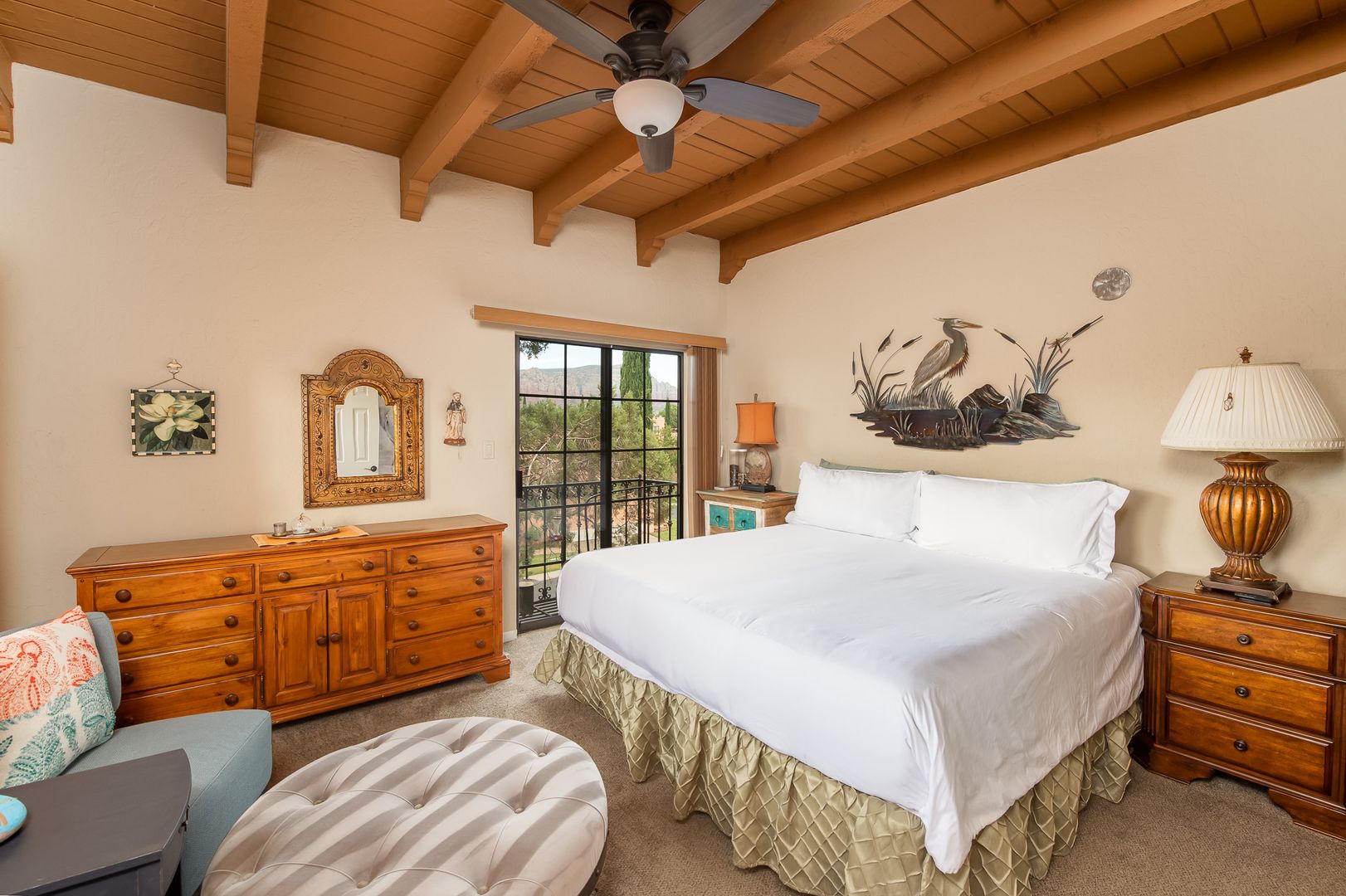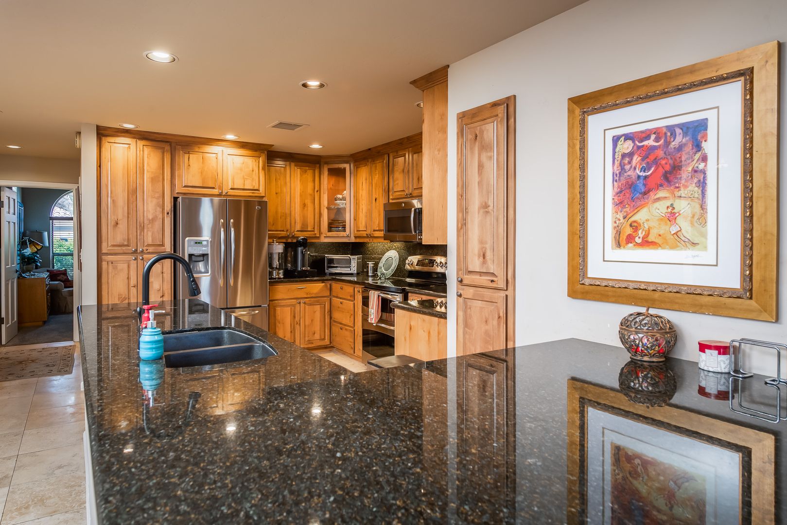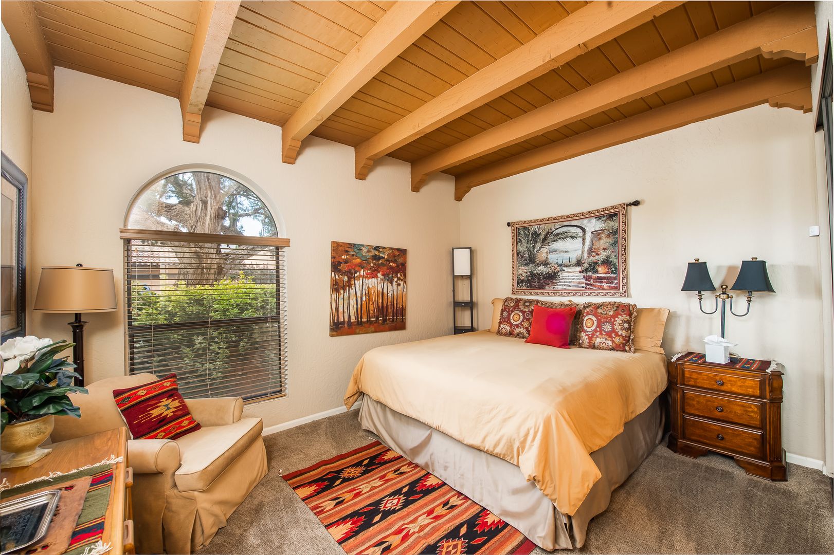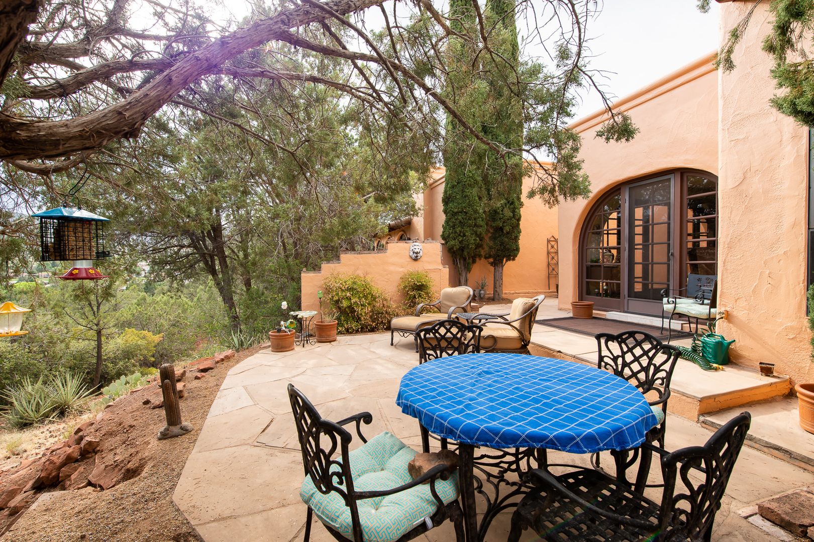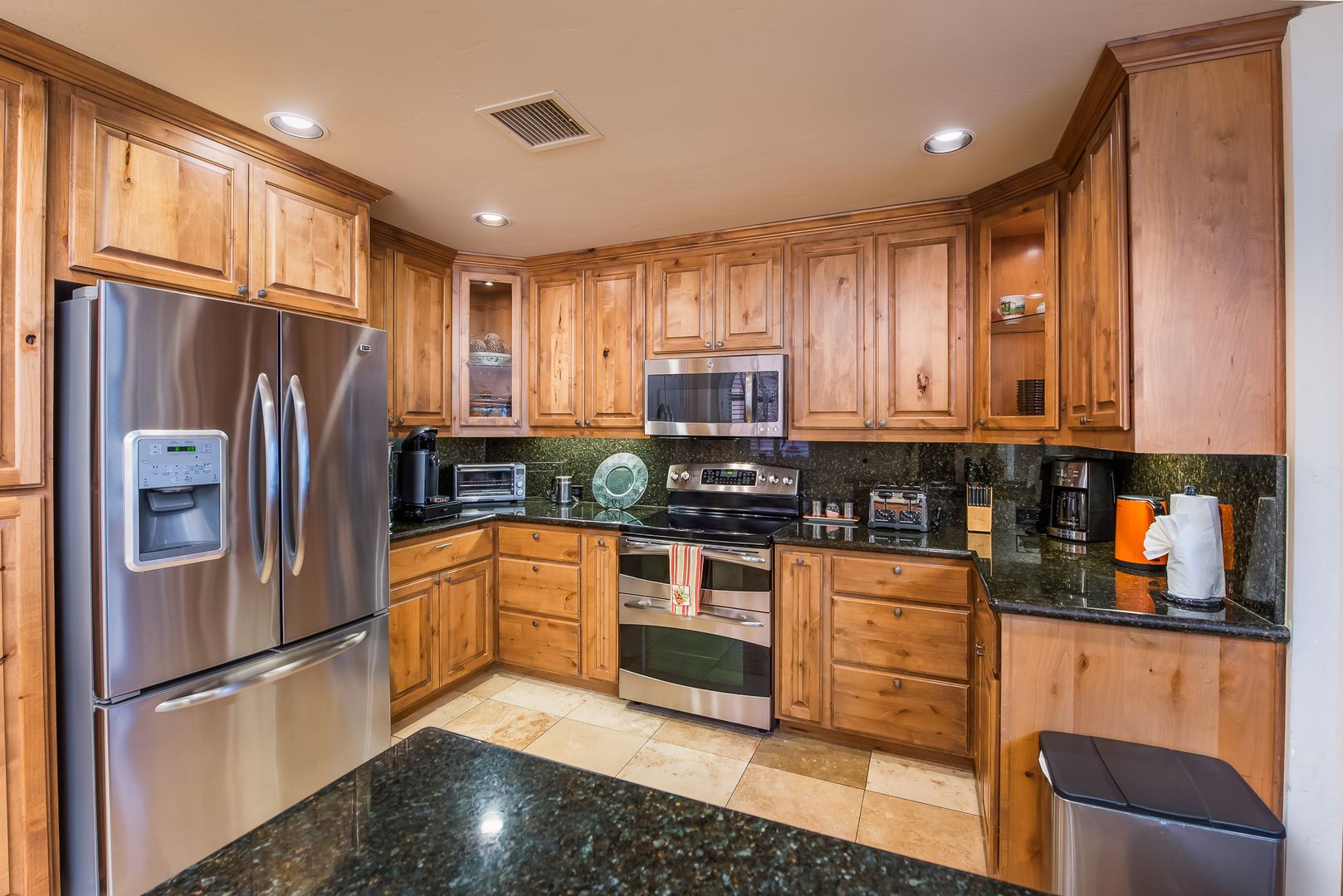 This enchanting and stylish 3BR/2BA condominium is in the gated community of The Ridge, a subdivision located in The Village of Oak Creek with a Tuscan motif. Built in 1985 the home spans two floors and is approximately 2,084 square feet. The great room opens into the kitchen and the dining area, both of which offer seating options for guests. Kitchen is fully updated with stainless steel appliances and ample counter space for cooking. The dining area is comfortably tucked off the kitchen and is perfect for a more formal evening or a private work space. Off the dining room is a large private patio with outdoor seating, privacy, and incredible views.