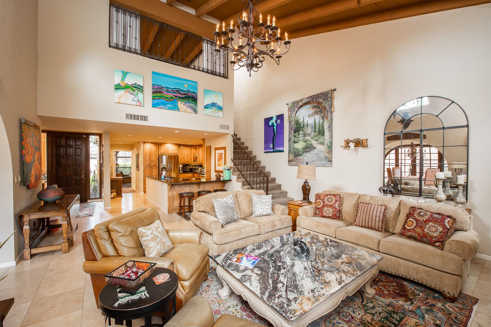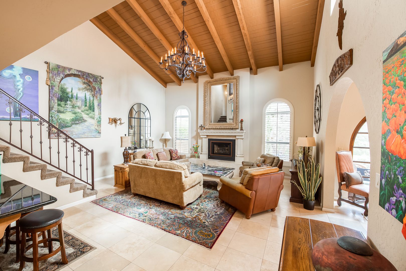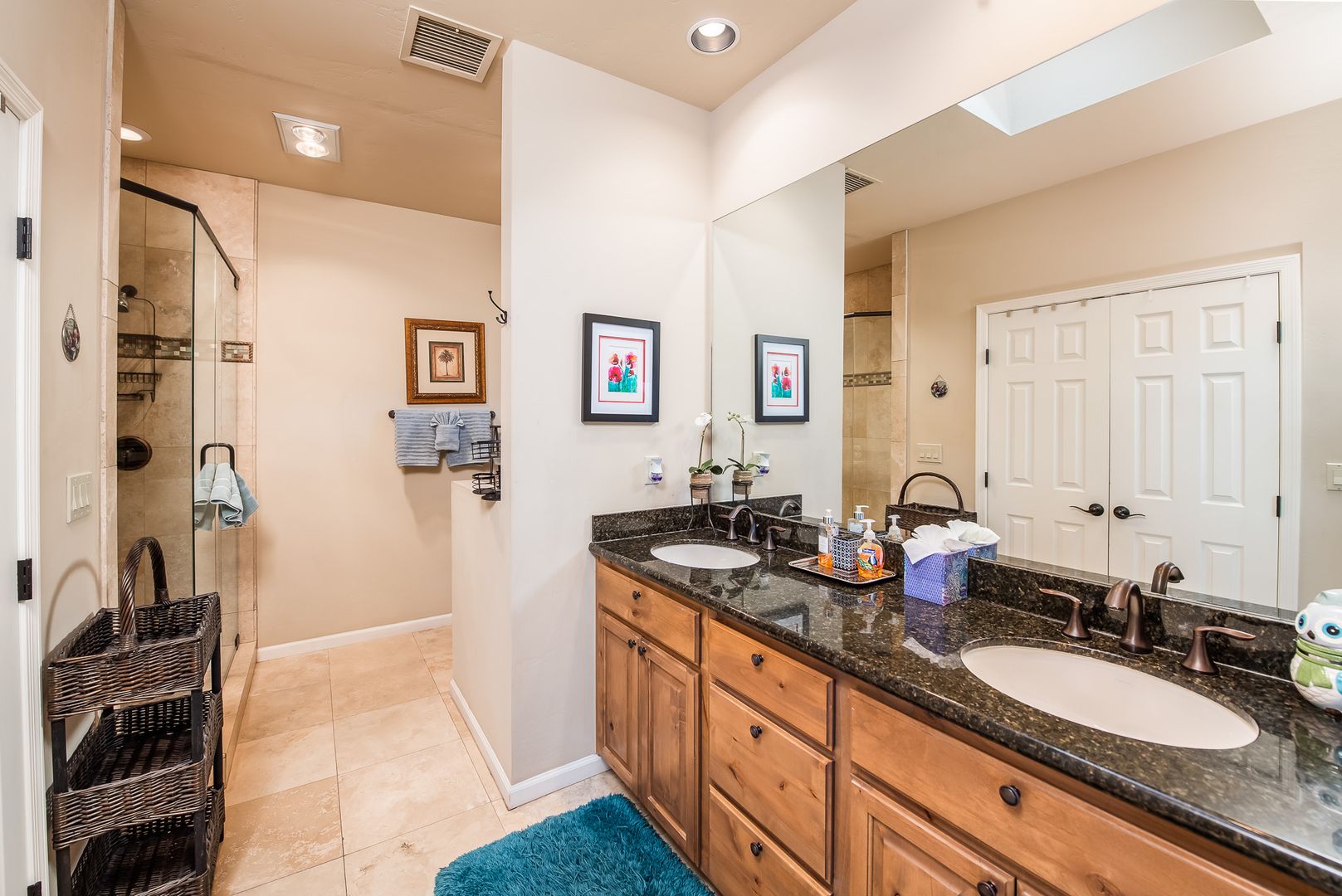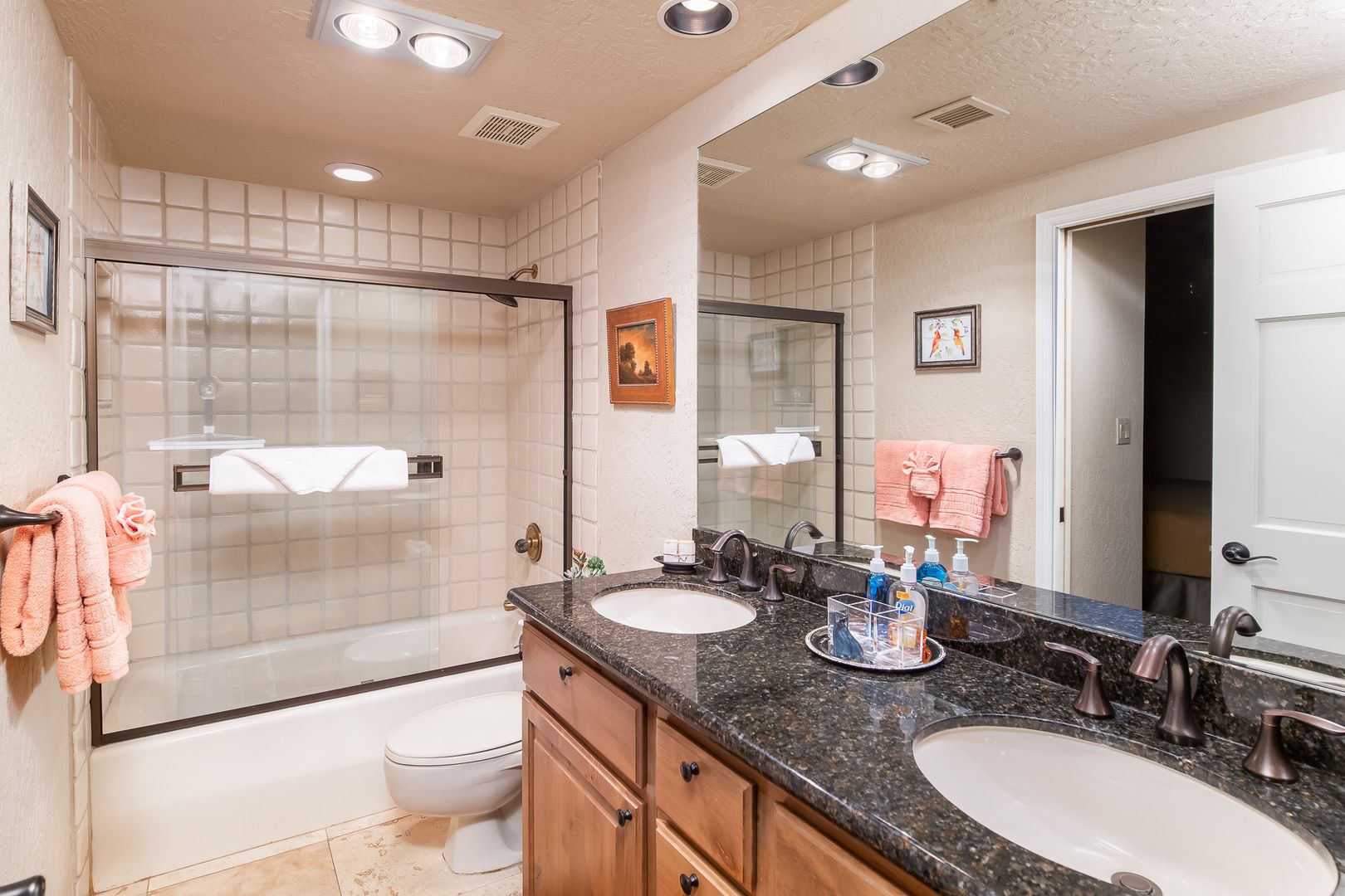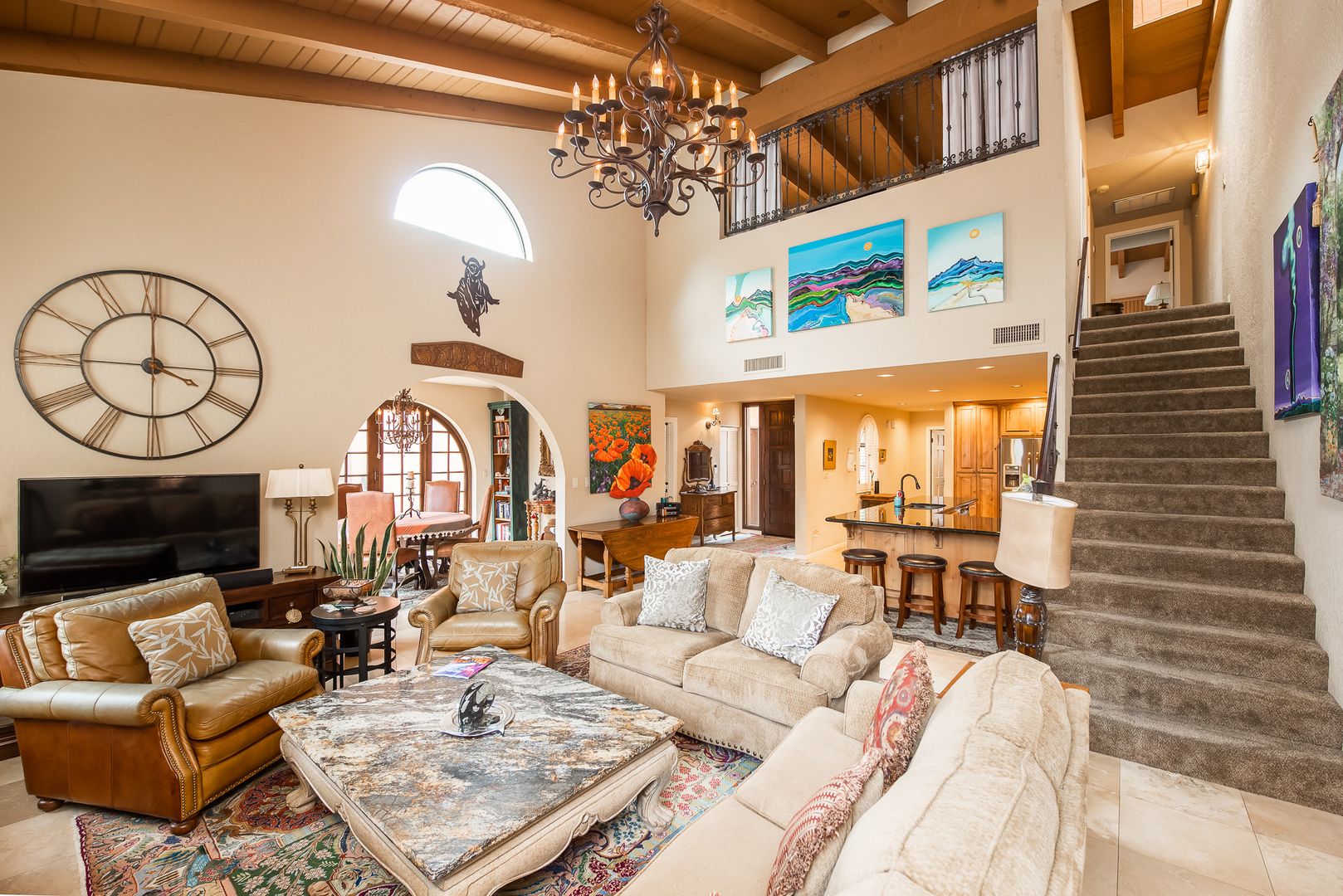 This enchanting and stylish 3BR/2BA condominium is in the gated community of The Ridge, a subdivision located in The Village of Oak Creek with a Tuscan motif. Built in 1985 the home spans two floors and is approximately 2,084 square feet. The great room opens into the kitchen and the dining area, both of which offer seating options for guests. Kitchen is fully updated with stainless steel appliances and ample counter space for cooking. The dining area is comfortably tucked off the kitchen and is perfect for a more formal evening or a private work space. Off the dining room is a large private patio with outdoor seating, privacy, and incredible views.