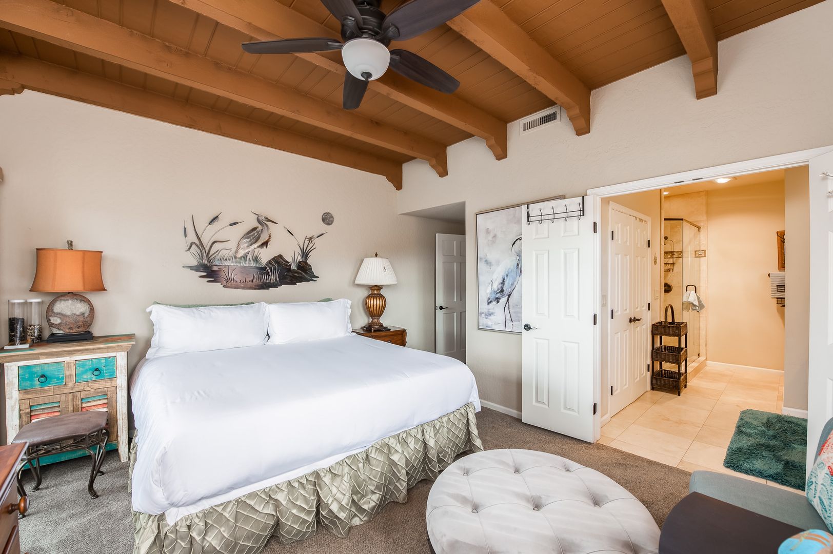 The home offers a first floor suite with jack-and-jill bathroom. The master suite is located upstairs and includes plenty of storage space as well as an en-suite with a large closet. Walk back towards the stairs and find another bedroom/tv room with an incredible veranda opportunity. Use of one space in the garage for tenants.